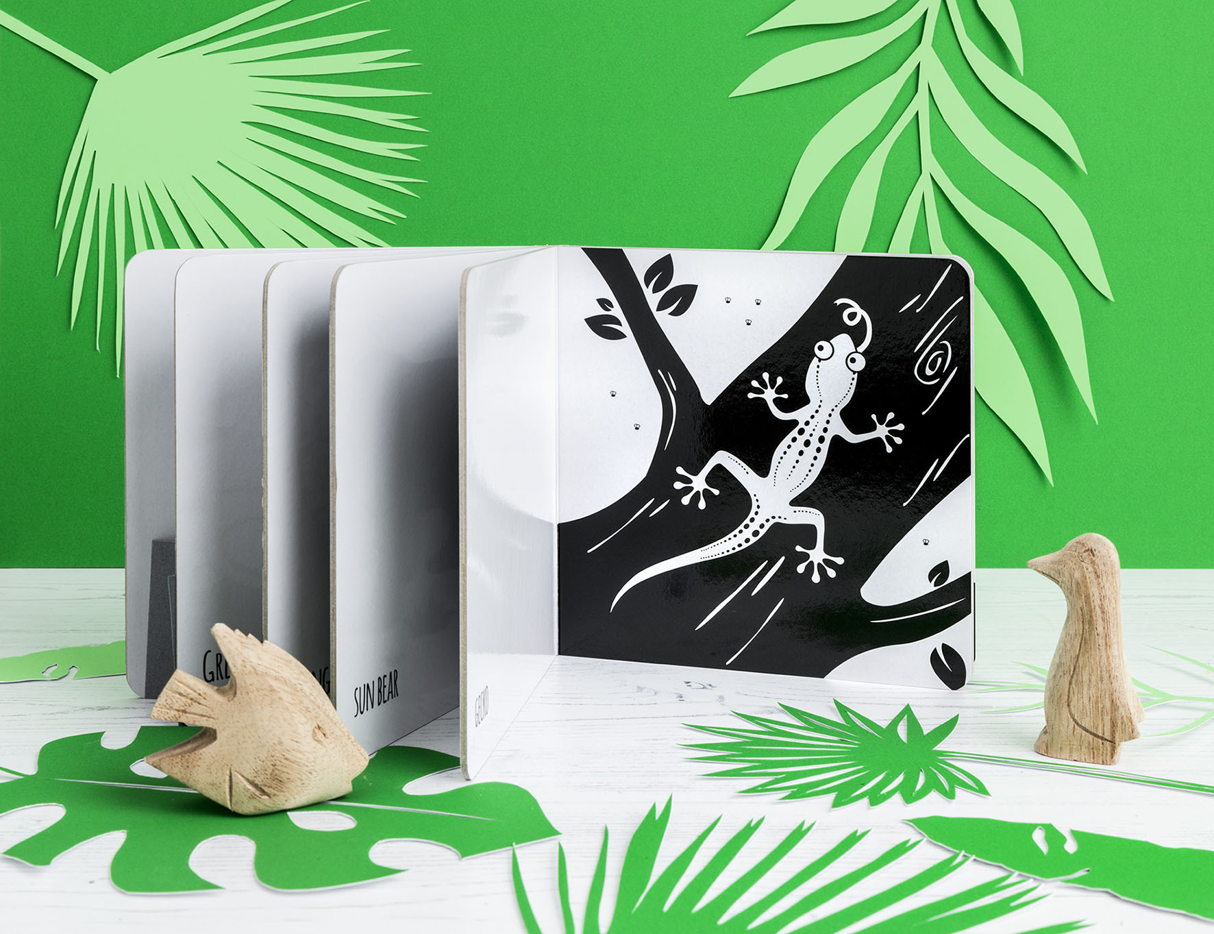 Amazing Animals from Southeast Asia black and white board book by Black and White Book Project. Price: £7.50.