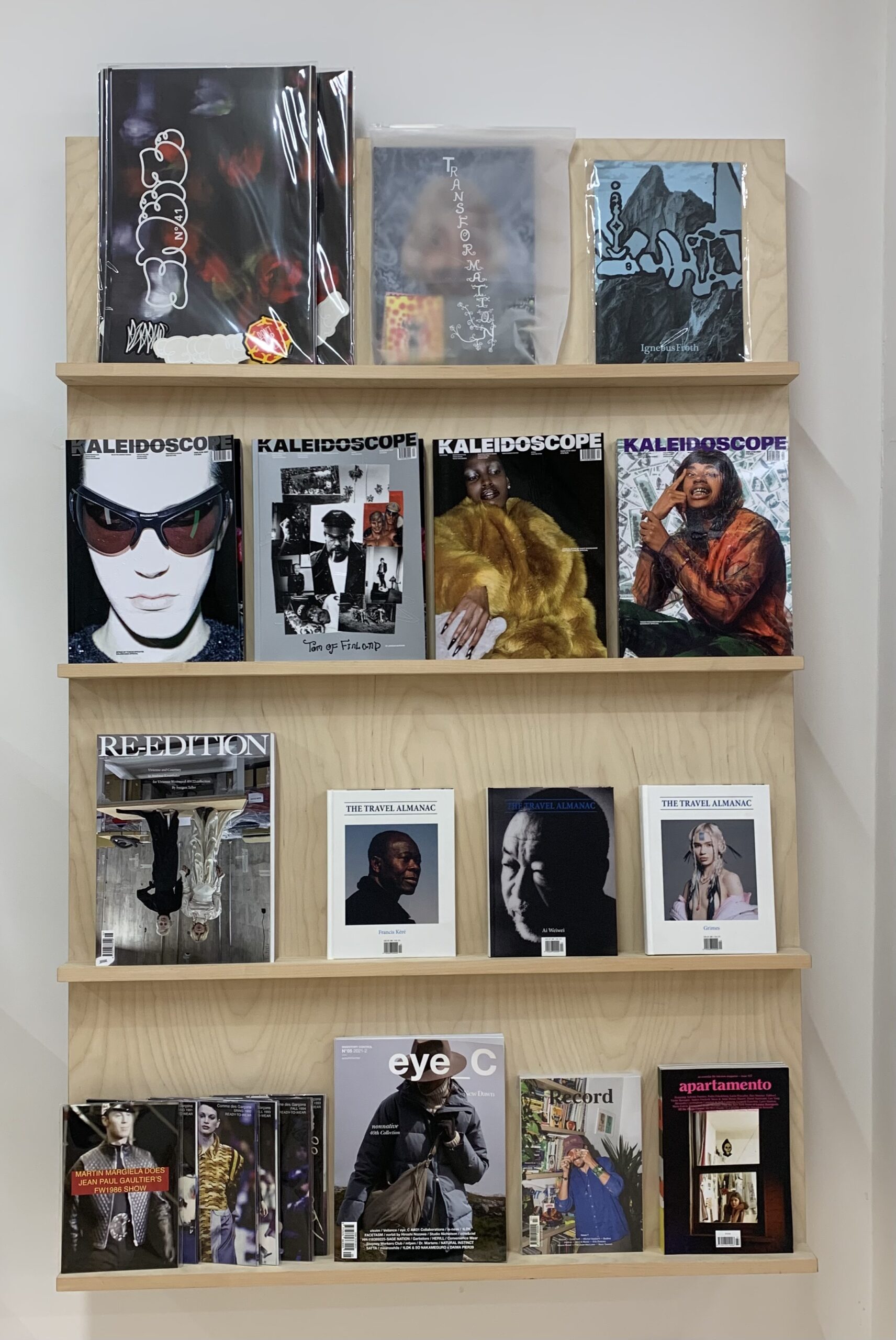 The new store is filled with little touches. The changing room curtains are designed by illustrator, Leomi Sadler (@leomi_sadler), while their print collection celebrates creative local publications and those from far afield.