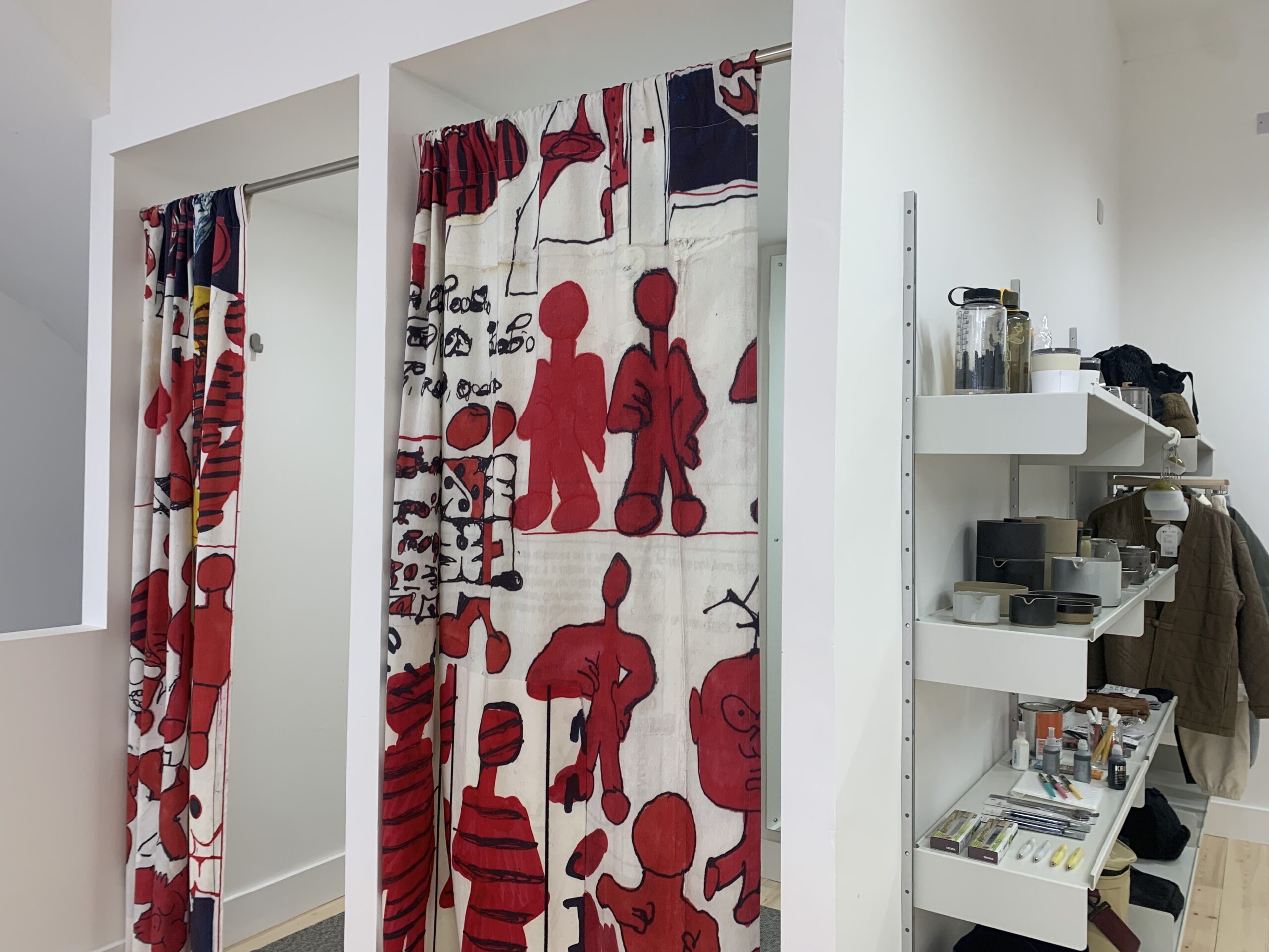 Illustrator Leomi Sadler designed the store’s changing room curtains