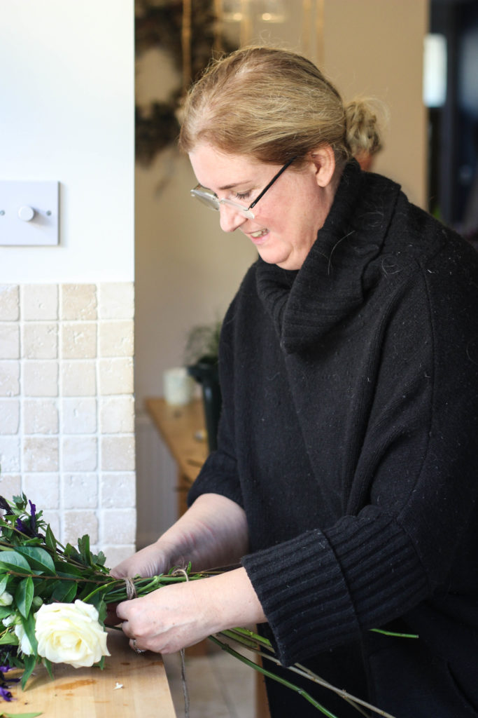 The finished arrangements are expertly wrapped by Louise – a skill she picked up at Roots Floral Designs on Broad Quay