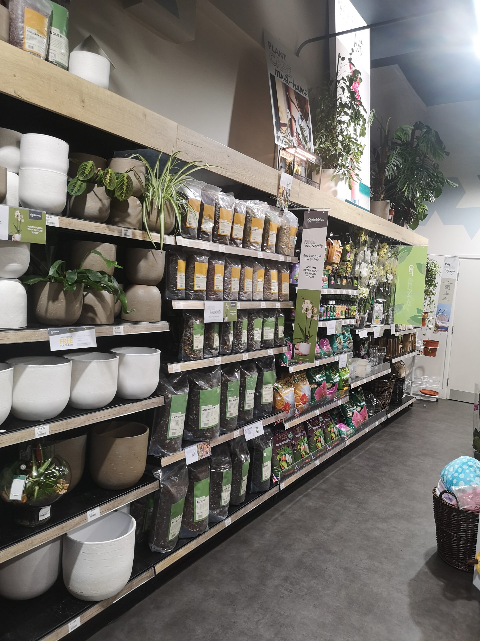 Its shelves include houseplants, pots, a selection of thematic gifts along with gardening tools, bulbs and seeds.