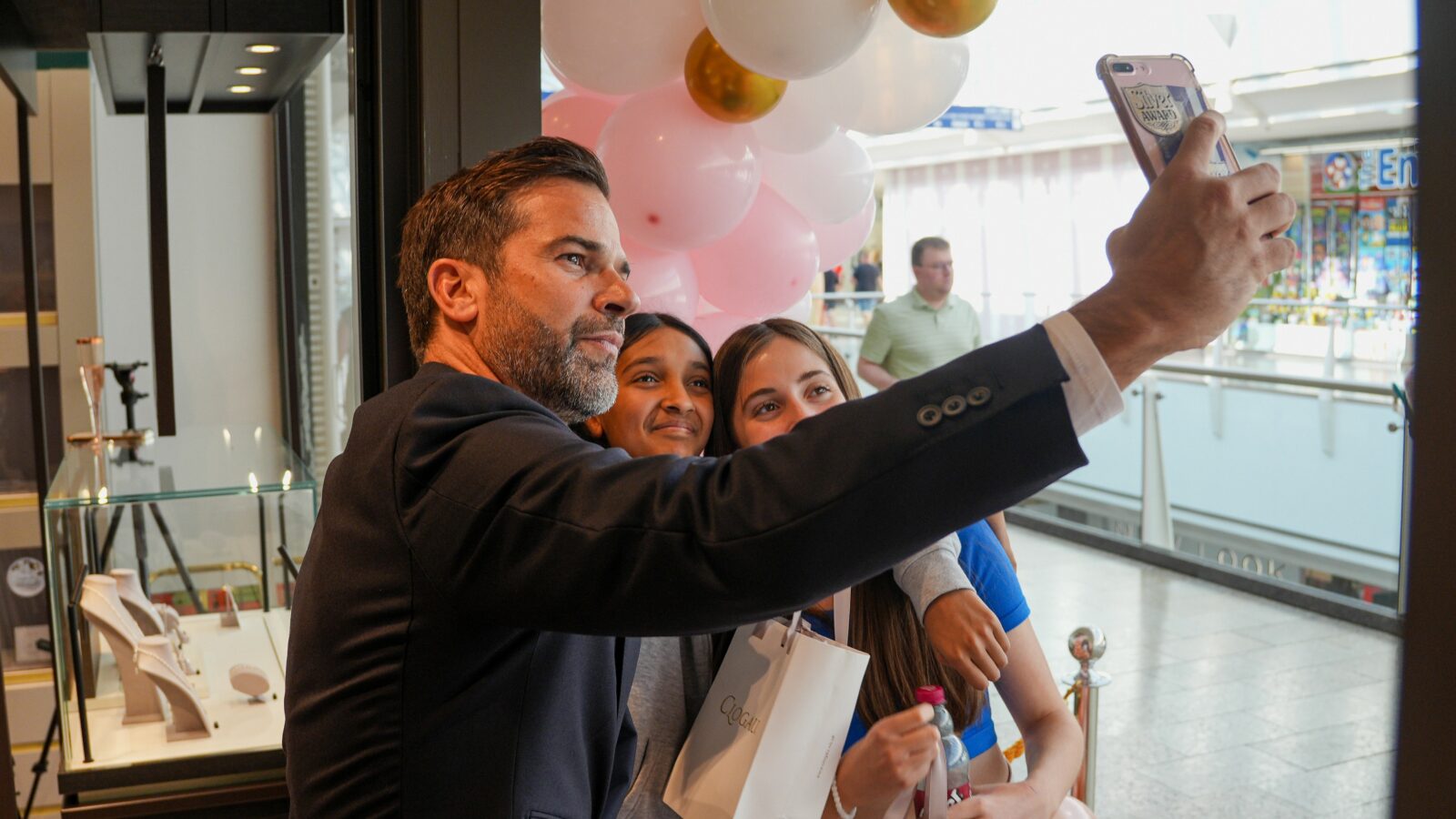 Gethin Jones cut the ribbon of a new jewellery shop in Cribbs Causeway before posing for selfies with fans.