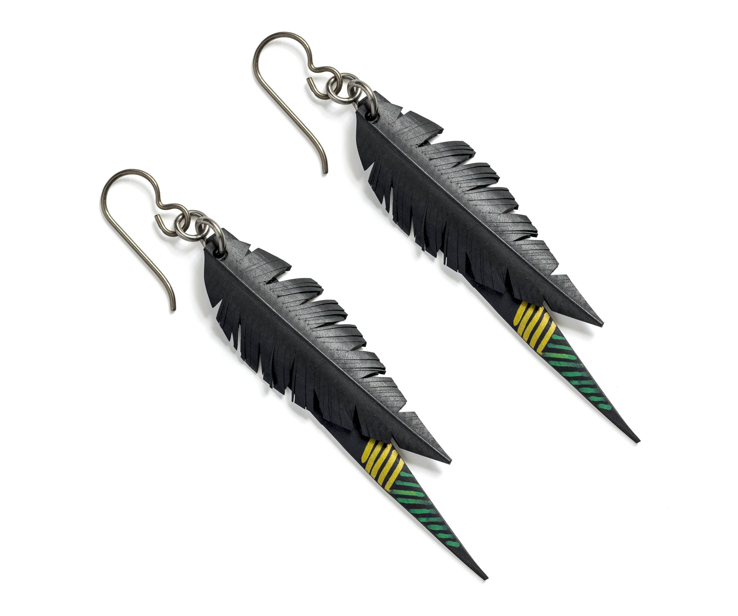 Designer Beck Prior, of Priormade, uses recycled, reclaimed and low impact materials to create bold and colourful homeware. Priormade’s ethos is to, where possible, re-purpose materials into creative products that delight and surprise, so intricate feather earrings are made from discarded bicycle inner tubes and delicate wooden jewellery is formed from an old church pew.