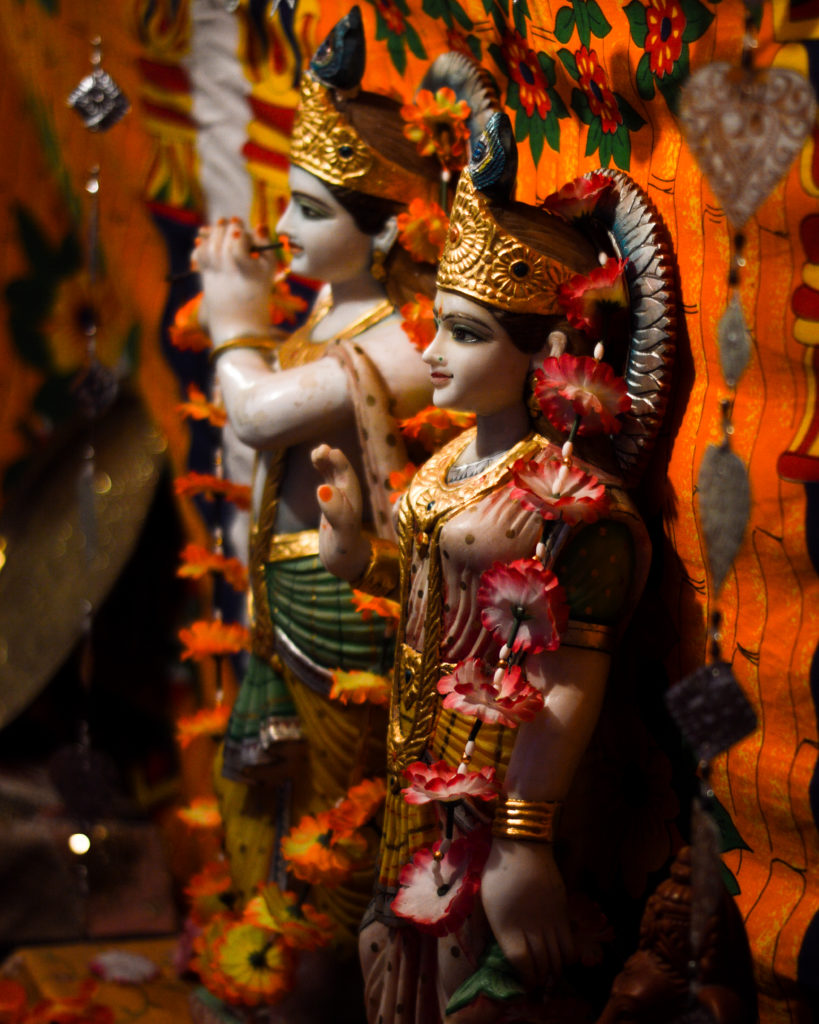 Guided through a small archway, we enter a darker and even more cosy room. With cushions on the floor that anybody is welcome to sit on and impressive statues placed in the centres of colourful shrines, it feels like somewhere to settle down for a relaxing nap.
