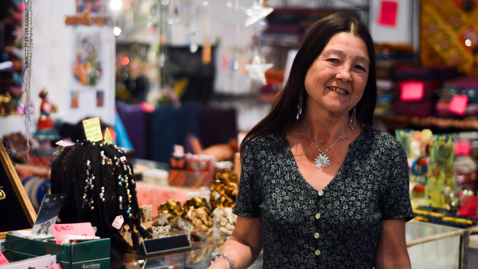 Gliding through her store, she proudly points out her favourite pieces: crystal necklaces that glisten in the soft light, incredibly intricate spiders made of glass that hang from delicate silver chains, accompanied by literally thousands of colourful flowers scattered around.
