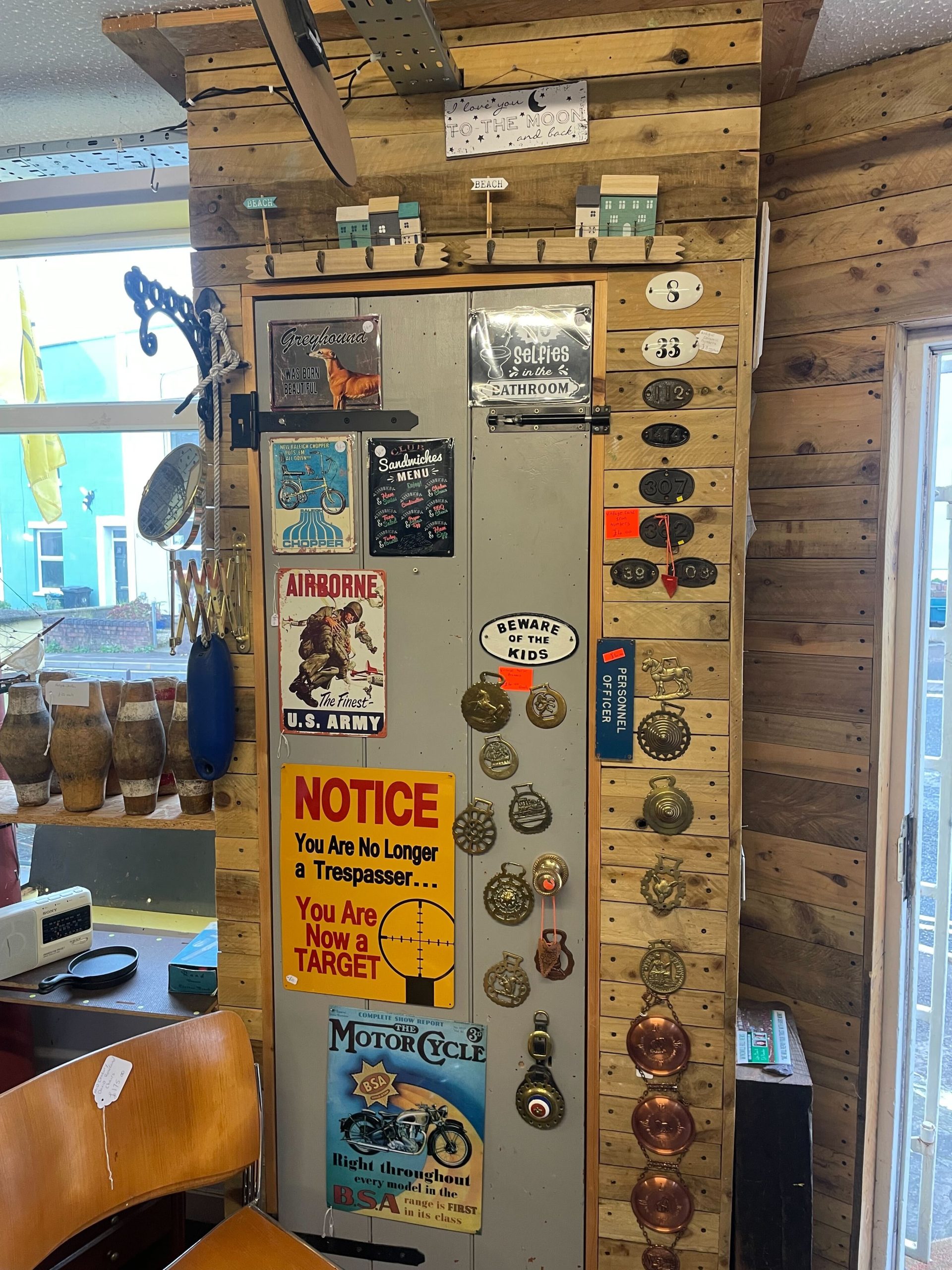 Antiques have a far-reaching history in the Brady family. Kevin’s dad used to sell building materials and tool out of a garage in Southville near the Tobacco Factory. This element of family history has been retained, as evidenced by the racks of tools available for sale in Piglets.