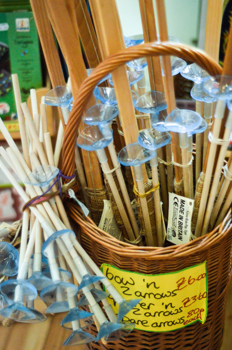 While there is a huge range of toys to choose from, when pressed Nigel is able to choose a favourite: the handmade wooden bows and arrows that made just outside Warminster. They nestle in a wicker basket, each set tied with string.