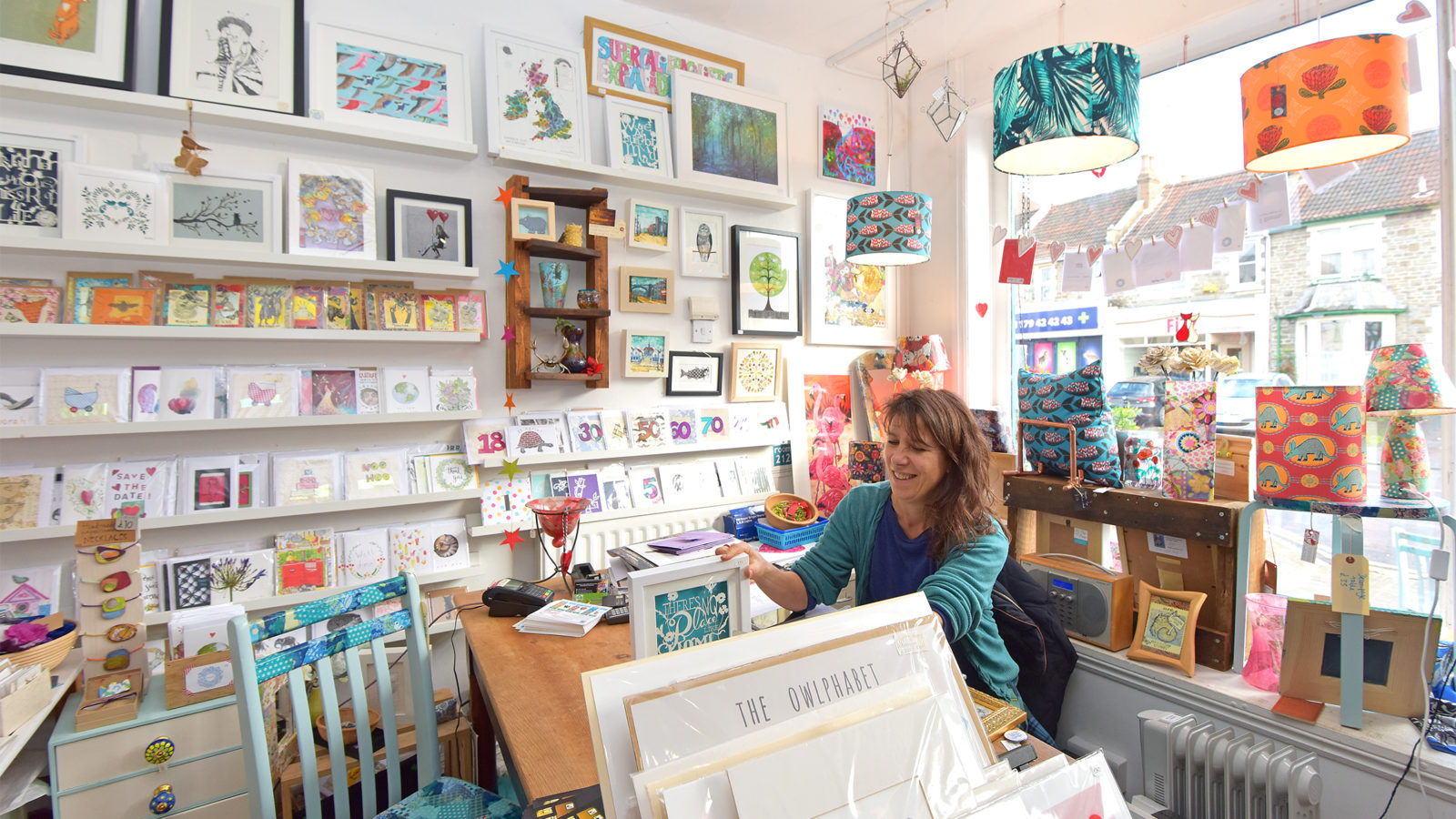 “I was getting to know lots of artists in the area, and so I was overjoyed when I had to move house and I realised this was for sale, and now I live here with my family. I’d always wanted to have a shop.”