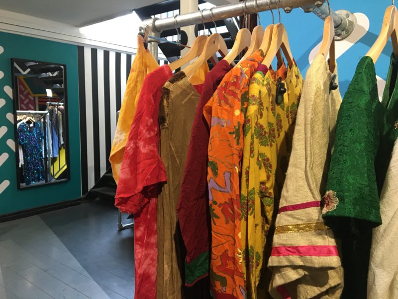 Early 2000s feminist anthems blare around the large, open-plan space that is Park Street’s vivid and colourful Vintage Thrift Store. Overflowing red rails dotted generously around the shop are packed tightly with clothes of all colours, sizes and fabrics.