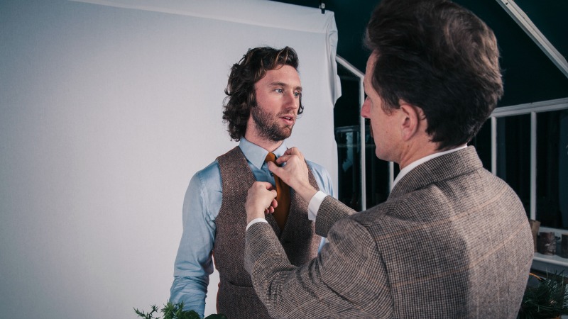 Brown in Town prides itself on offering advice on style as well as dress and seeks to encourage our customers to explore which look will work best for them personally. We are interested to know what the style of the wedding is, as well as the colour scheme, so that we can make informed suggestions as to which cloth or cut will be most suitable, but above all, will be most flattering. Once we have ascertained what the groom will wear, we then discuss what the groomsmen will wear – whether Brown in Town is dressing them or not – and what will set the tone for the wedding photos, which, ultimately, is what dressing groomsmen is all about: controlling the imagery.