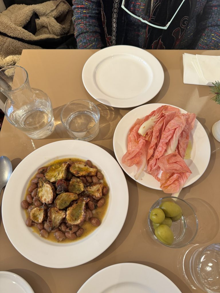Borlotti beans, artichoke, rosemary, garlic and bitter leaf salad – photo: Hannah Massoudi