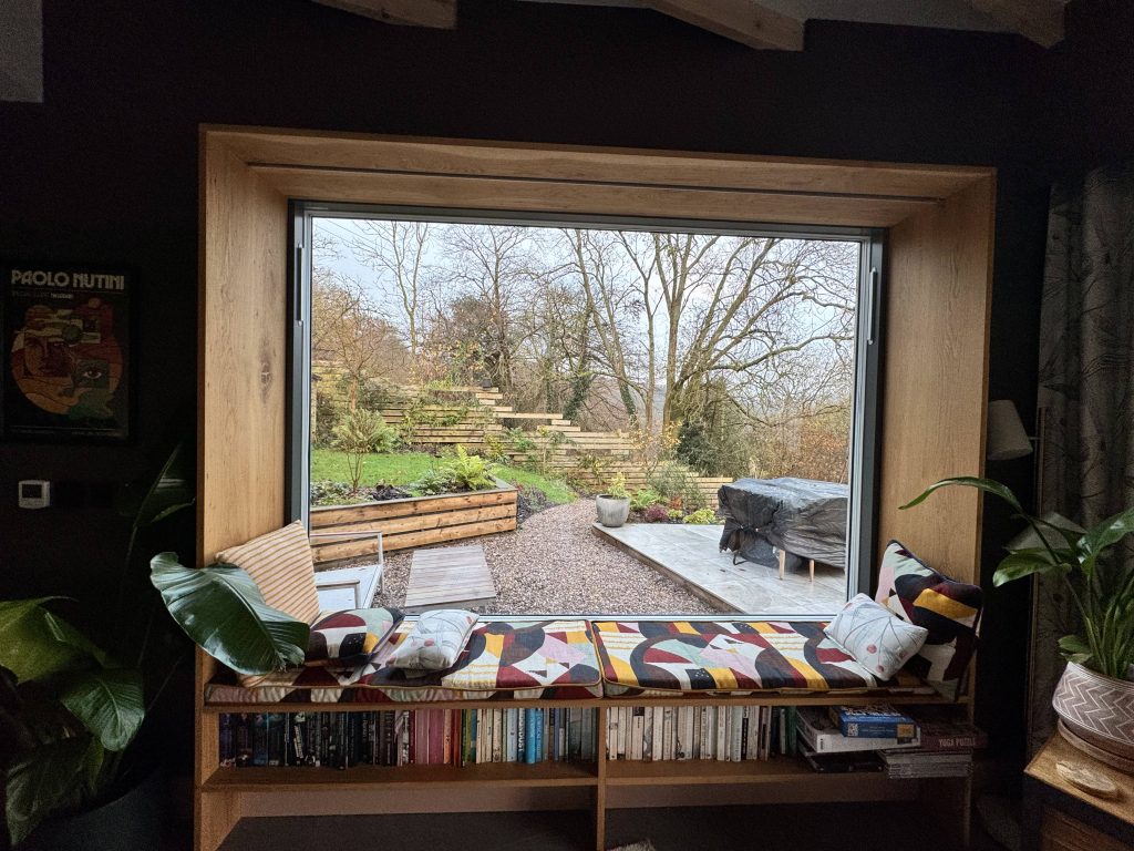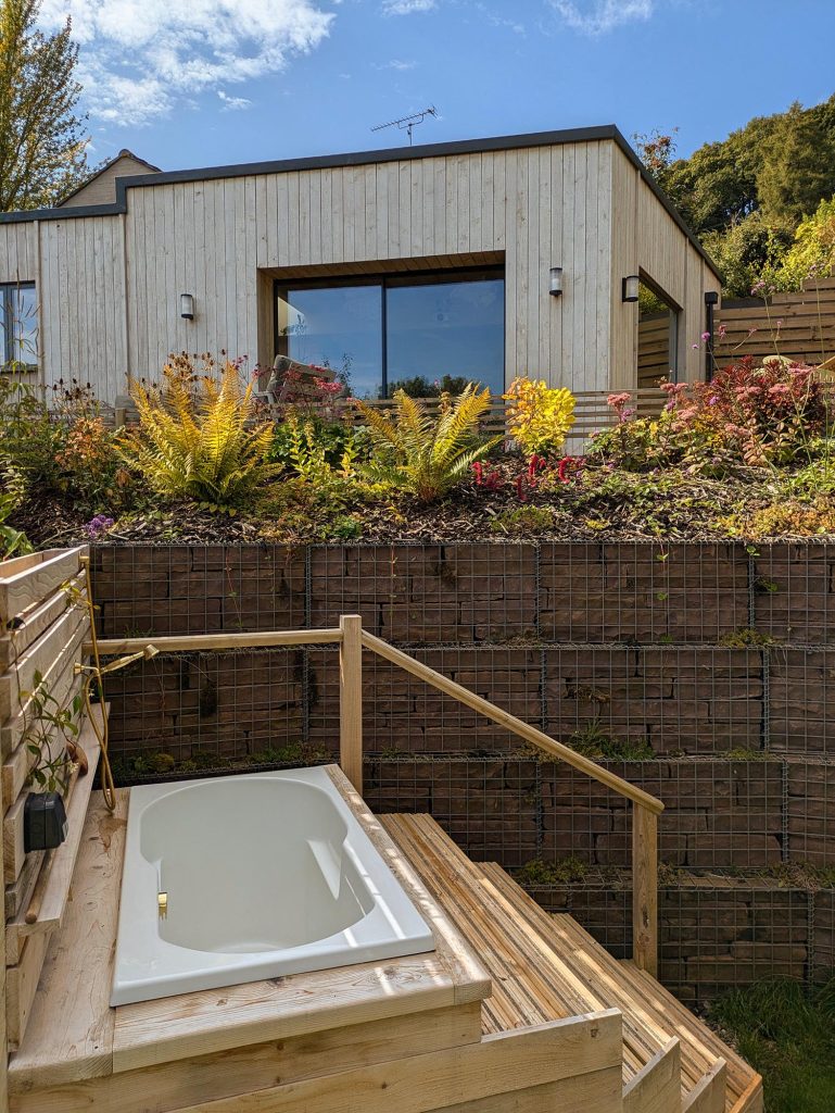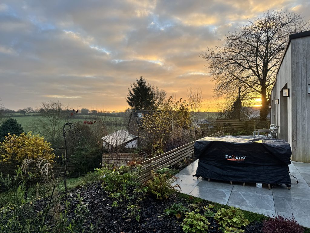 Sat on the hillside, the huge glass doors open up to beautiful views of the area and with a pair of binoculars at the ready on the table-side there is no excuse to not take it all in on a beautiful sunrise one morning. Books and boardgames of a huge variety tempt me to stay in for the weekend. In the garden there is a heated bath, which I admit we were not brave enough to try.