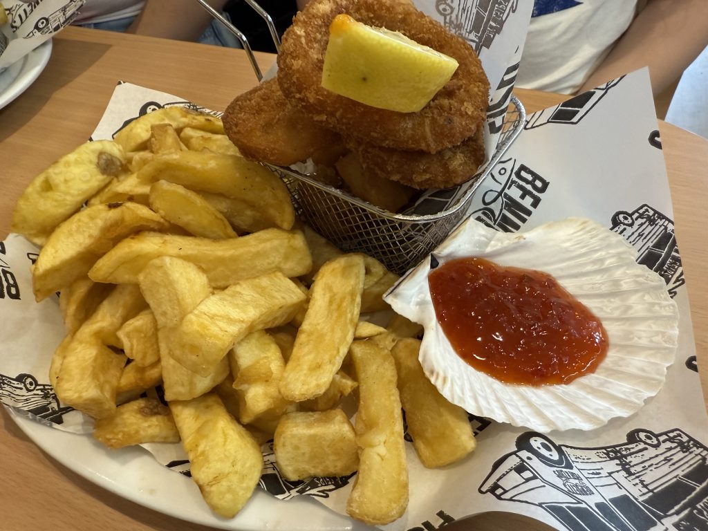 In Weymouth, you can find some of the best fish and chips on the Jurassic coast at Bennett’s on Trinity Road overlooking the harbour. My mackerel fillets were delicious – line-caught and lightly fried in Bennett’s “famous” batter – while my wife and two daughters all had the seafood basket with salt and pepper squid, butterfly king prawns, cod bites, calamari rings, a sweet chilli sauce and fish presented within a miniature fryer.