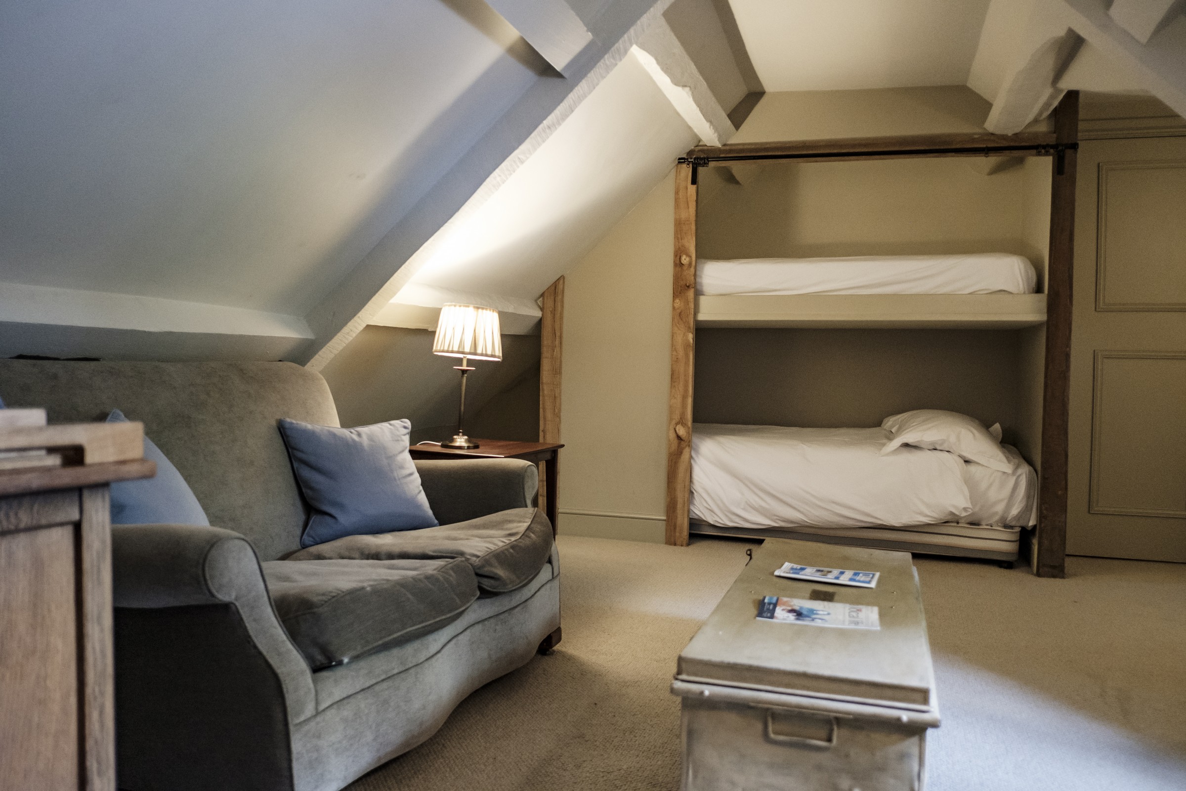 The Methuen Arms is also a restaurant and 14-room hotel, and our family-sized room high up in the eaves, with exposed beams and comfy armchairs, easily fitted our family of four.