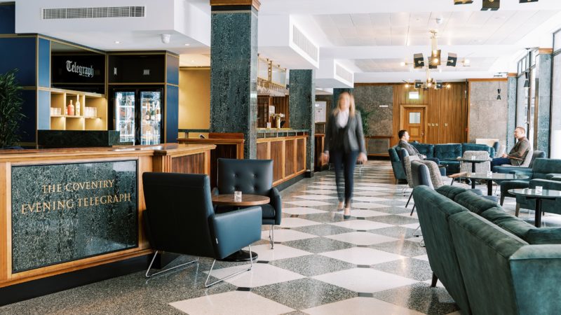 I drove here (from Bristol, it takes just under two hours). Then I checked into the new Telegraph Hotel. A cool, classy reinvention of the former offices of the local newspaper, the Coventry Telegraph, it was built in 1958 and is a classic example of the mid-century modernism that underpins the city’s post-war reconstruction.