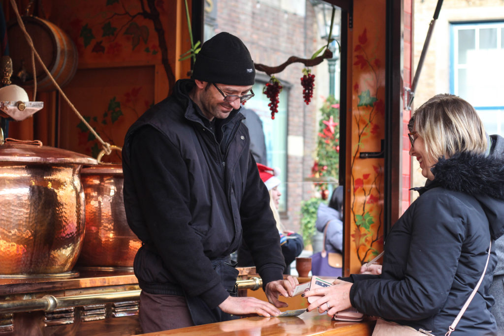 Punch made in great copper vats is sold at the Handwerker Markt by the city hall