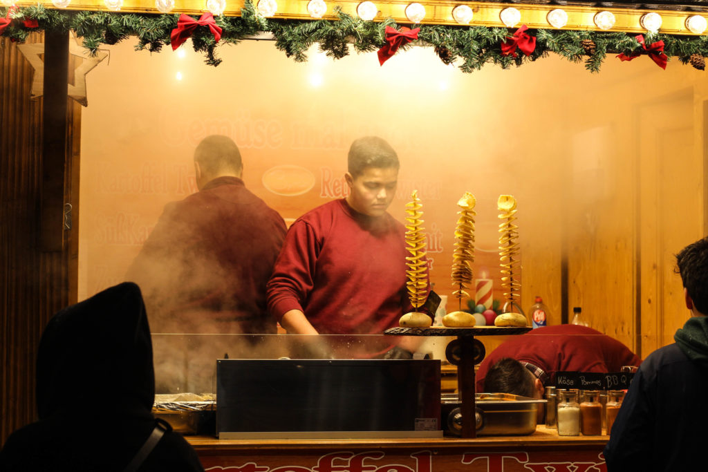 There’s more food and drink, as well as indoor shopping opportunities, in the nearby Kö-Bogen market. With more space, as well as a big covered area to congregate in, it’s a popular place to meet friends and soak up the festive vibe if the crush of the old town is getting too much. Sip a hot drink bundled up against the cold and relax: you’re a million miles from the Christmas rush.