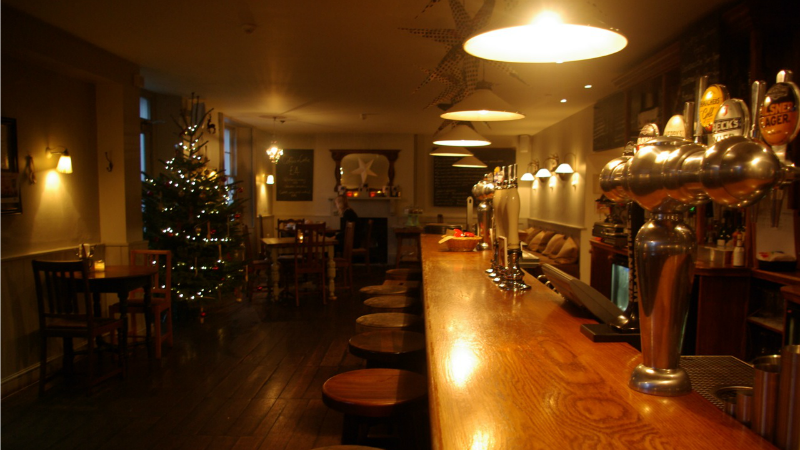 We opened the large, heavy door to the bar and were immediately greeted by the scent of mulled spices. “Sometimes I just open the lid and inhale that gorgeous Christmassy scent,” said the smiling manager. The Swan is a pub and hotel right in the centre of the village of Wedmore, just beyond Cheddar. Wooden floors, generous and considered food, comfortable and pretty decor with a touch of the industrial. Dark metal hanging light fittings and woodburners mix with the delicate wallpaper patterns. Nothing too country sweet; warm, welcoming and with that extra something that makes it special. The soaps and hand creams made locally, the vintage suitcase and hanging pegs in the bedroom, fresh flowers, the Christmas tree decorated with wooden knives and forks.