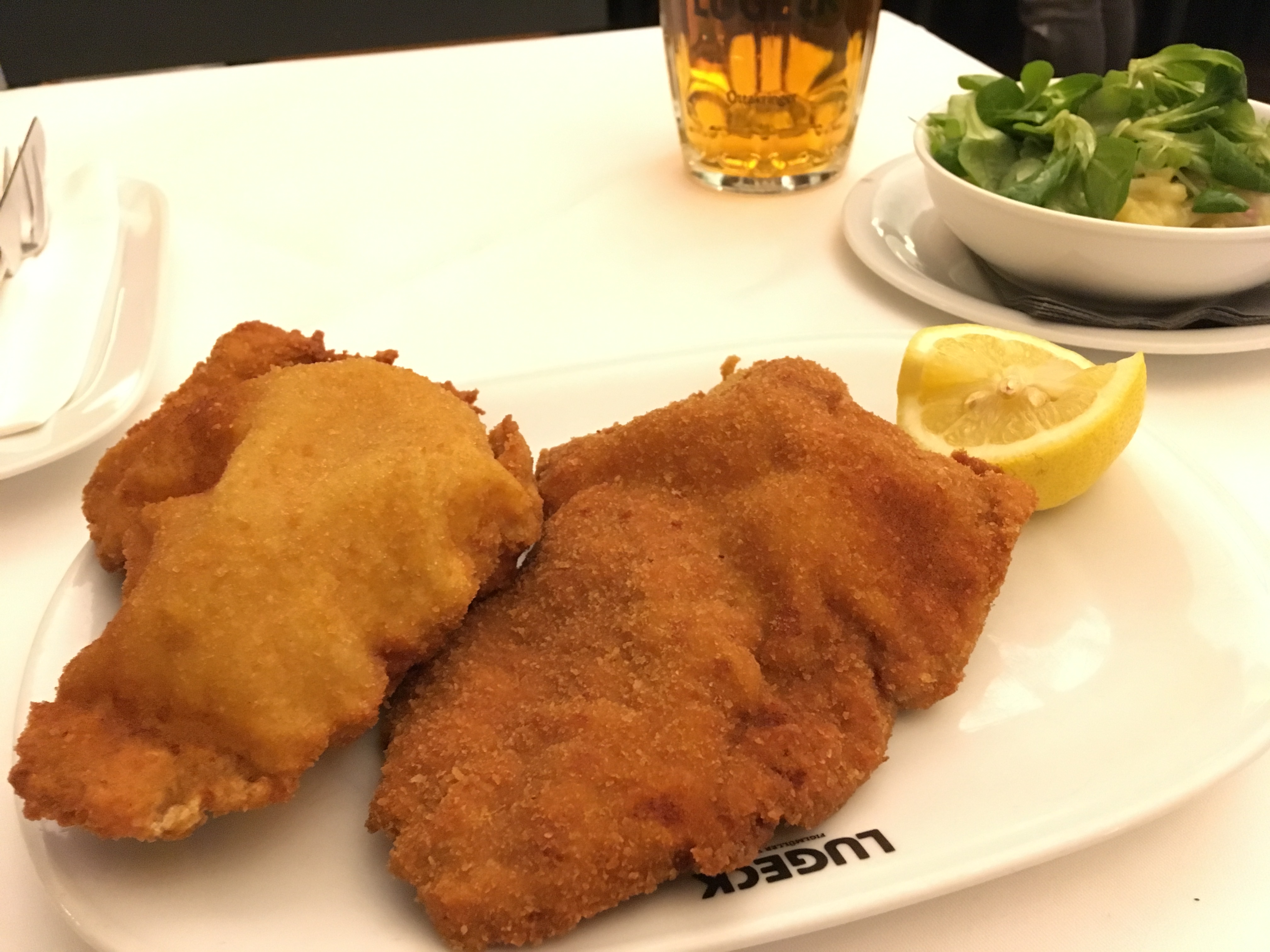 If the food at the market hasn’t hit the spot, eat some of the city’s finest Wiener Schnitzel – a breaded, pan-fried veal cutlet – at Lugeck, an upmarket take on the traditional tavern. The schnitzel (€20.80) comes piping hot with crisp batter and a generous squeeze of lemon, and is served with a potato and lamb’s leaf salad, all the better when washed down with a local craft beer (from €3.80).