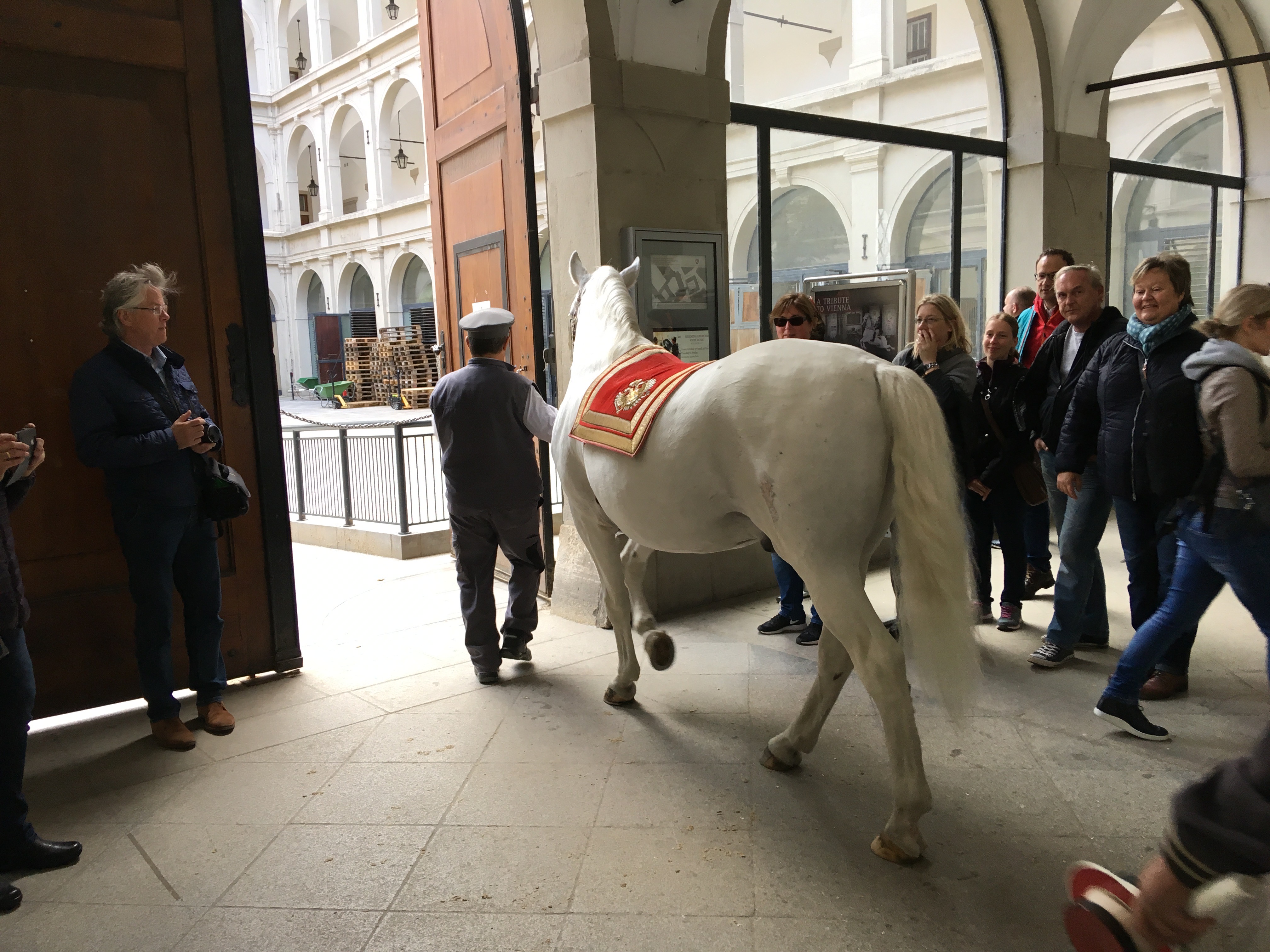 Vienna’s famous Lipizzaner ponies passing through the imperial palace to their stables