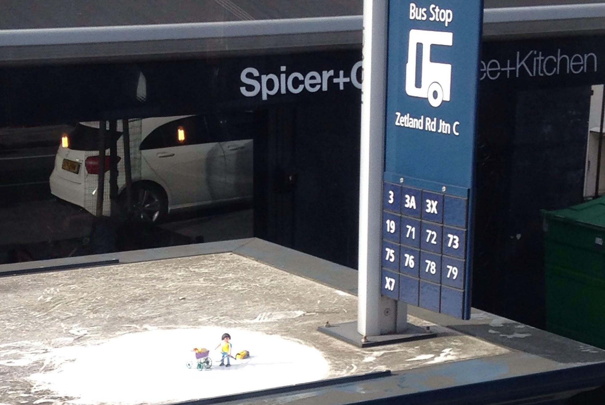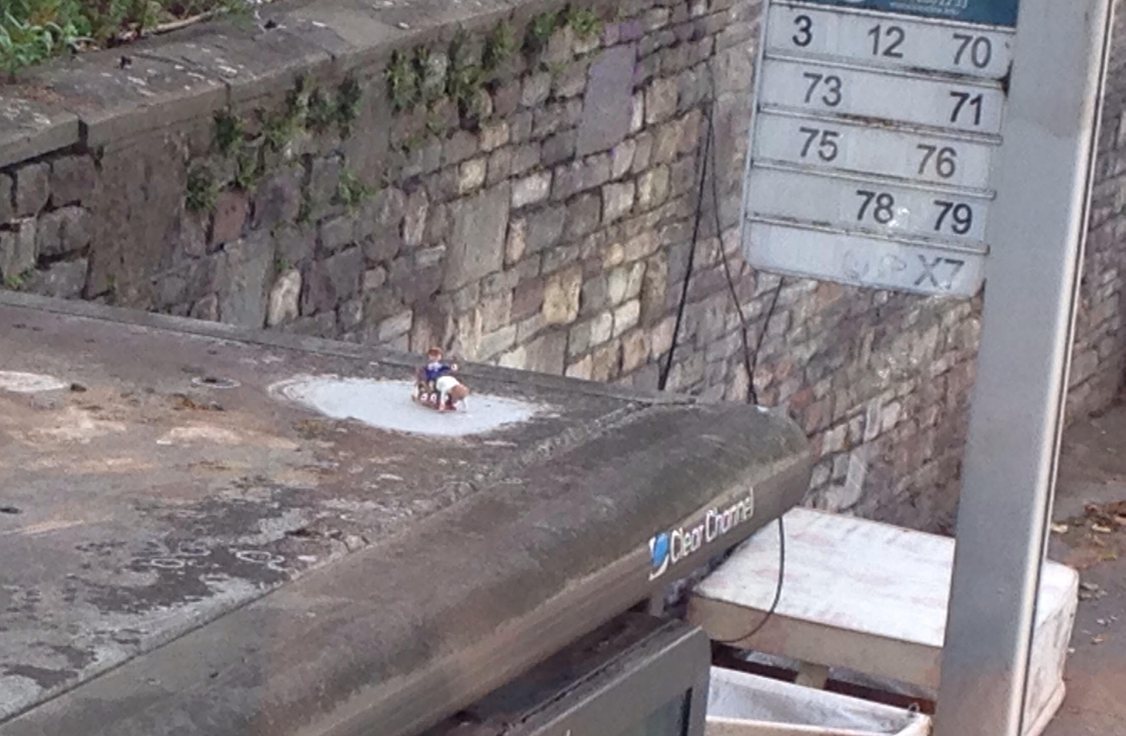 Bus journeys are being brightened up in Bristol by an anonymous artist whose Playmobil figures stretch from Stokes Croft to the Memorial Stadium.