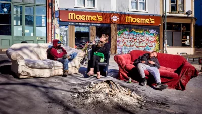 One unfortunate pair are stuck upside down in a washing line, one duo are content simply to sit down on two chairs and wave at the passing traffic, while another are engaged in an activity that more usually requires the removal of clothes.