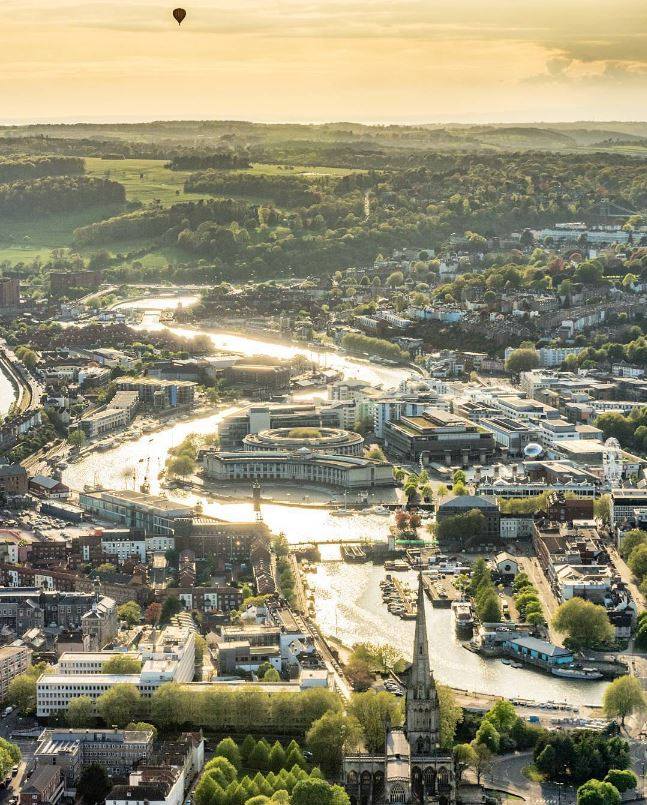 “The Clifton Suspension Bridge has got to be the most iconic Bristol landmark, and it looks just as stunning from a hot air balloon as it does from the ground! Designed by the all-round engineering genius Isambard Kingdom Brunel, it spans the Avon Gorge and was opened in 1864. The eagle-eyed amongst you may have spotted the second Severn Bridge reaching across to Wales in the background. This was completed 132 years after Brunel’s creation, but still works on the same principle he used in the 19th Century.”