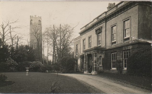 Hartfield House on Cotham Park photographed in 1922 with Cotham School’s tower in the background – a windmill from the mid-1700s that was converted into an observatory. It was demolished in 1952 but is still the symbol of the school. 43207/18/1