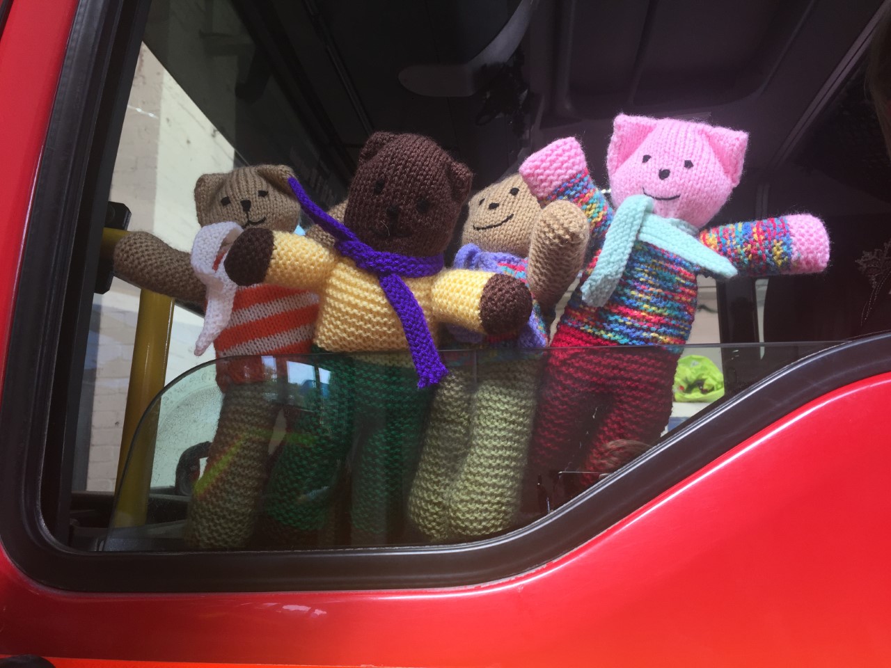Knitting began in March after the Knitter Natter group was inspired by a craft magazine that showed fire services around the country with similar toys and they created enough bears for each one of the 36 fire trucks to have two knitted teddies on board.