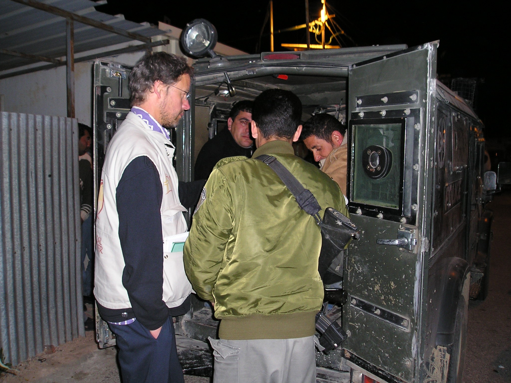 David Mowat during a visit to Palestine in 2006, monitoring the detention of a West Bank Palestinian who had been picked up for not having a permit to enter Jerusalum. Photo supplied by David Mowat.