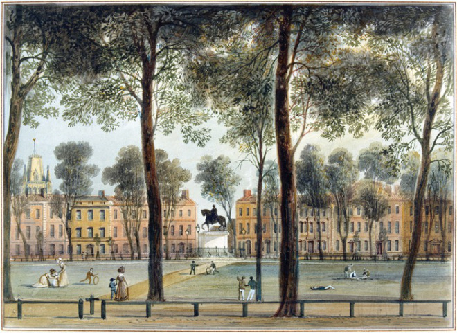 Queen Square, looking south-east, painted by 1827 Thomas Leeson Rowbotham – painting courtesy of Bristol Culture