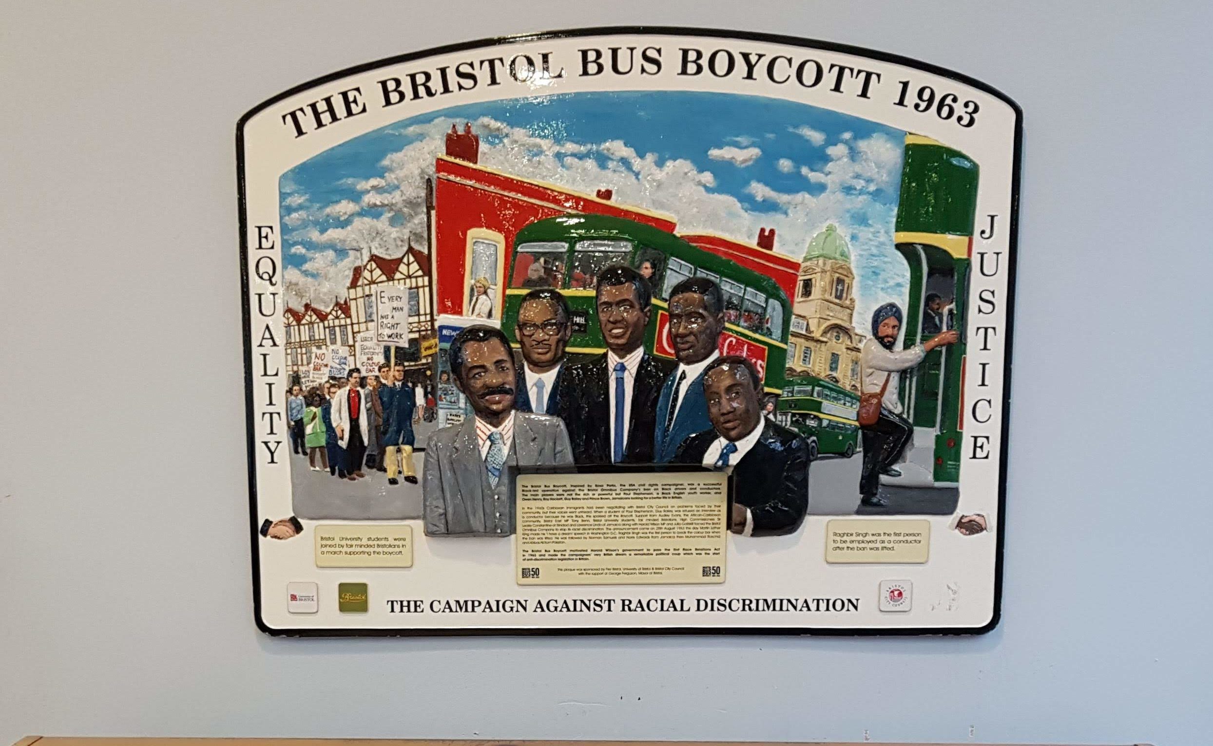 A plaque on the wall in Bristol Bus and Coach station is a permanent reminder of the campaign against racial discrimination in the city