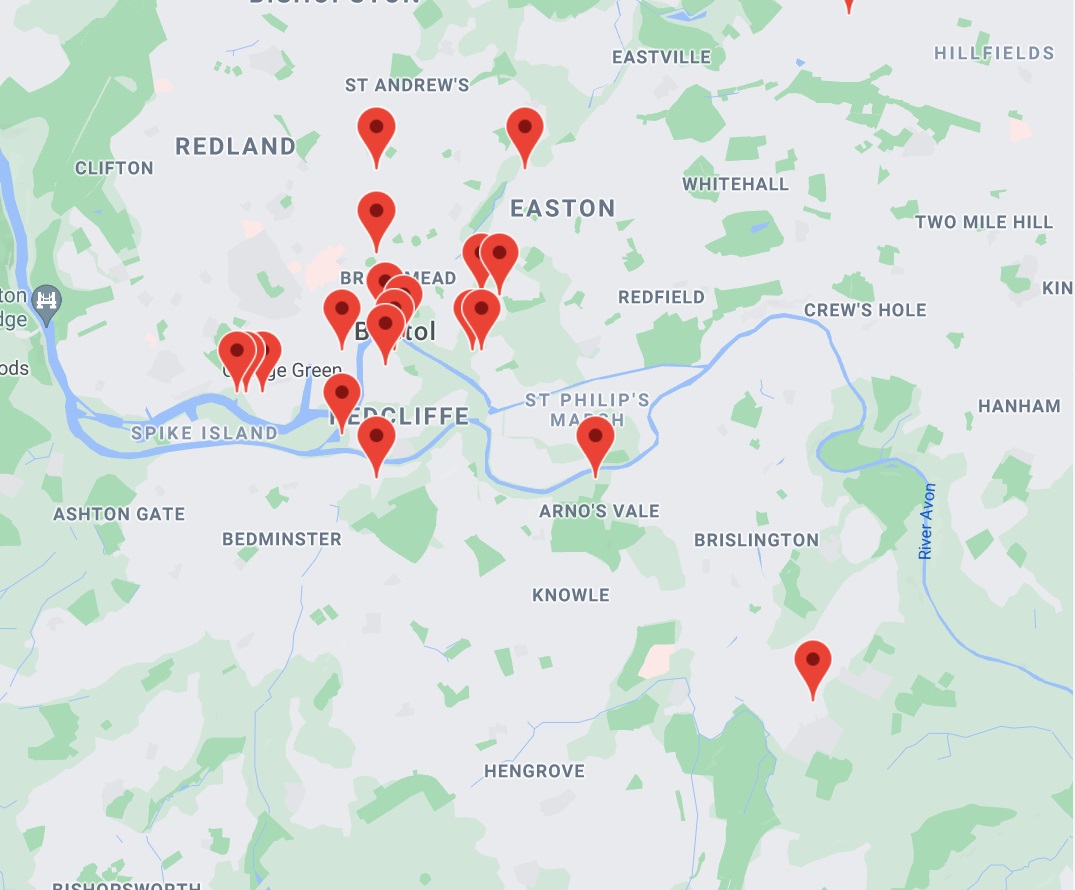The Building Safety Map indicates 20 buildings in Bristol are known to be affected by fire safety issues – image taken from the Building Safety Map website