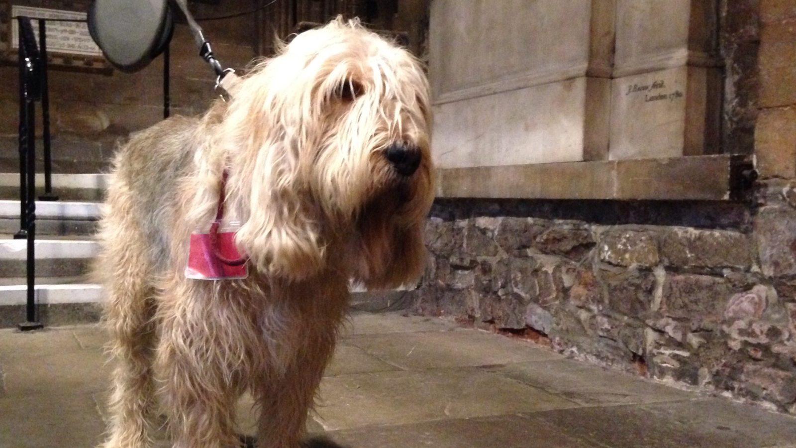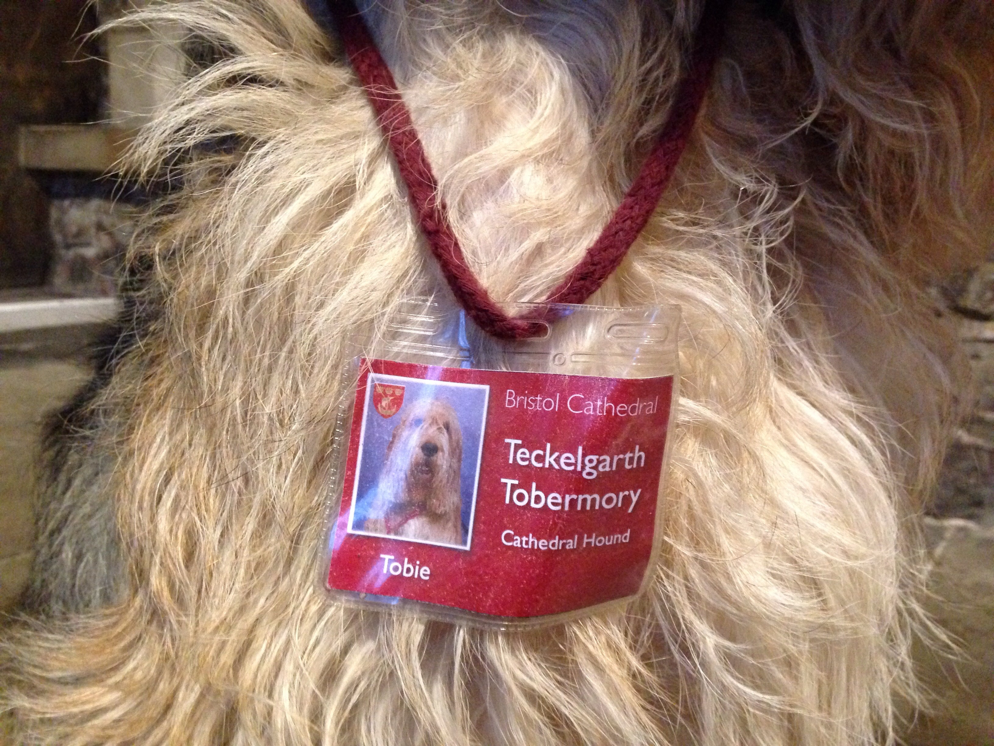 Proudly wearing his Bristol Cathedral lanyard around his neck, Teckelgarth Tobermory, or Tobie to his friends, strolls down the cloisters to ensure that everything in the cathedral is running smoothly.
