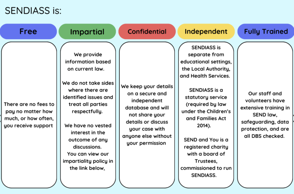 Their vision is to give high quality, accessible, impartial and confidential Special Educational Needs and Disabilities Information, Advice and Support (SENDIAS).