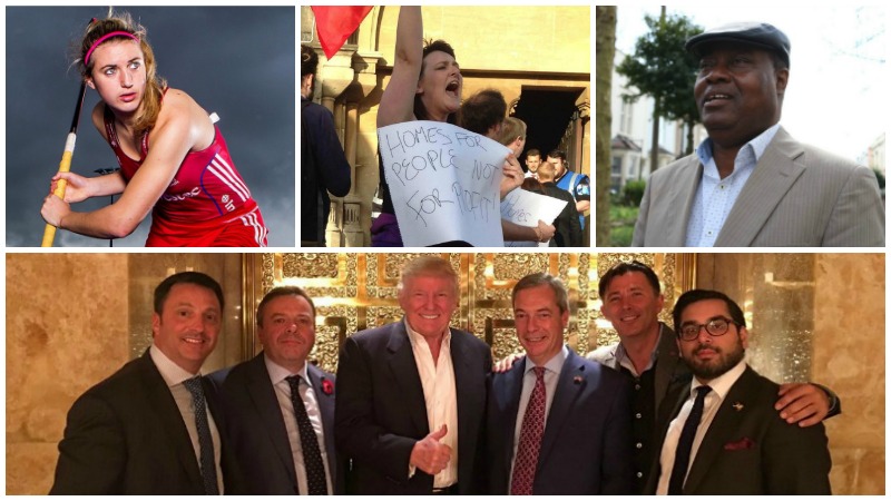 11. Bristol businessman Arron Banks (below, second from left) bankrolled the Leave.EU campaign and later joined his mate Nigel Farage in greeting Donald Trump next to a gold-plated lift. How did he make his millions?