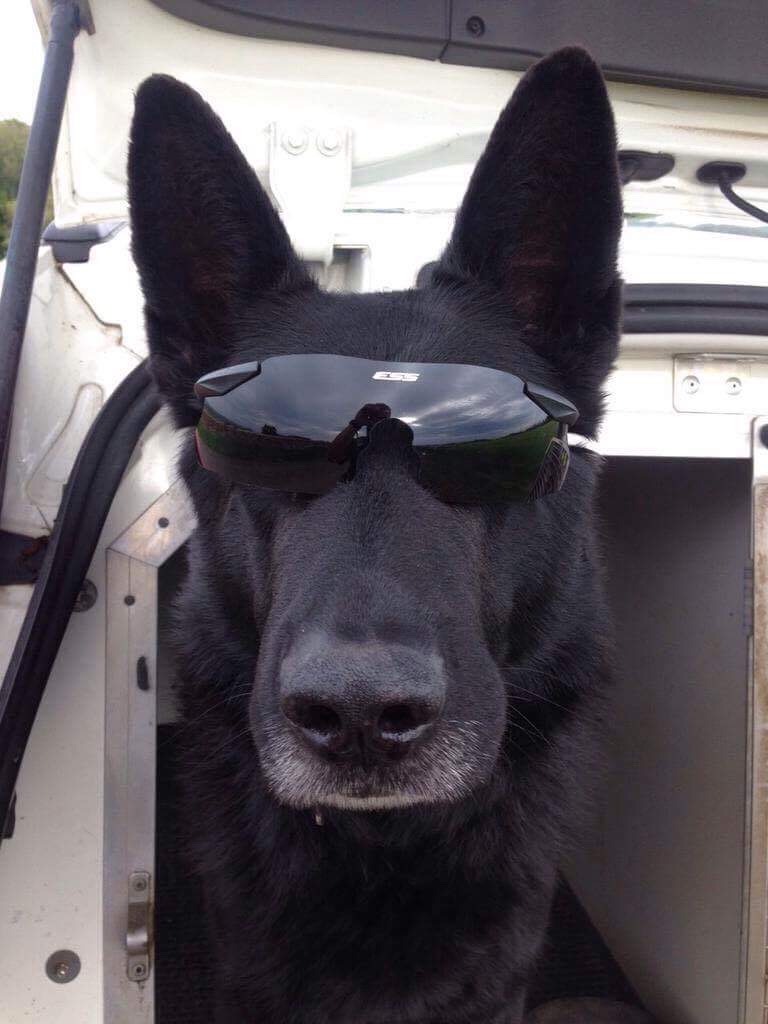 Police dog Max enjoying retirement in his favourite pair of sunglasses