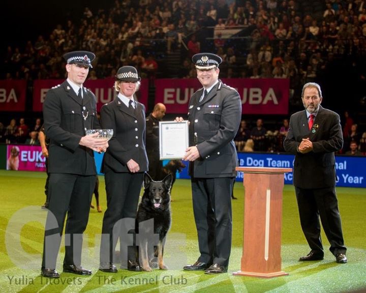Police dog Omar receiving his Crufts Award for bravery in 2015