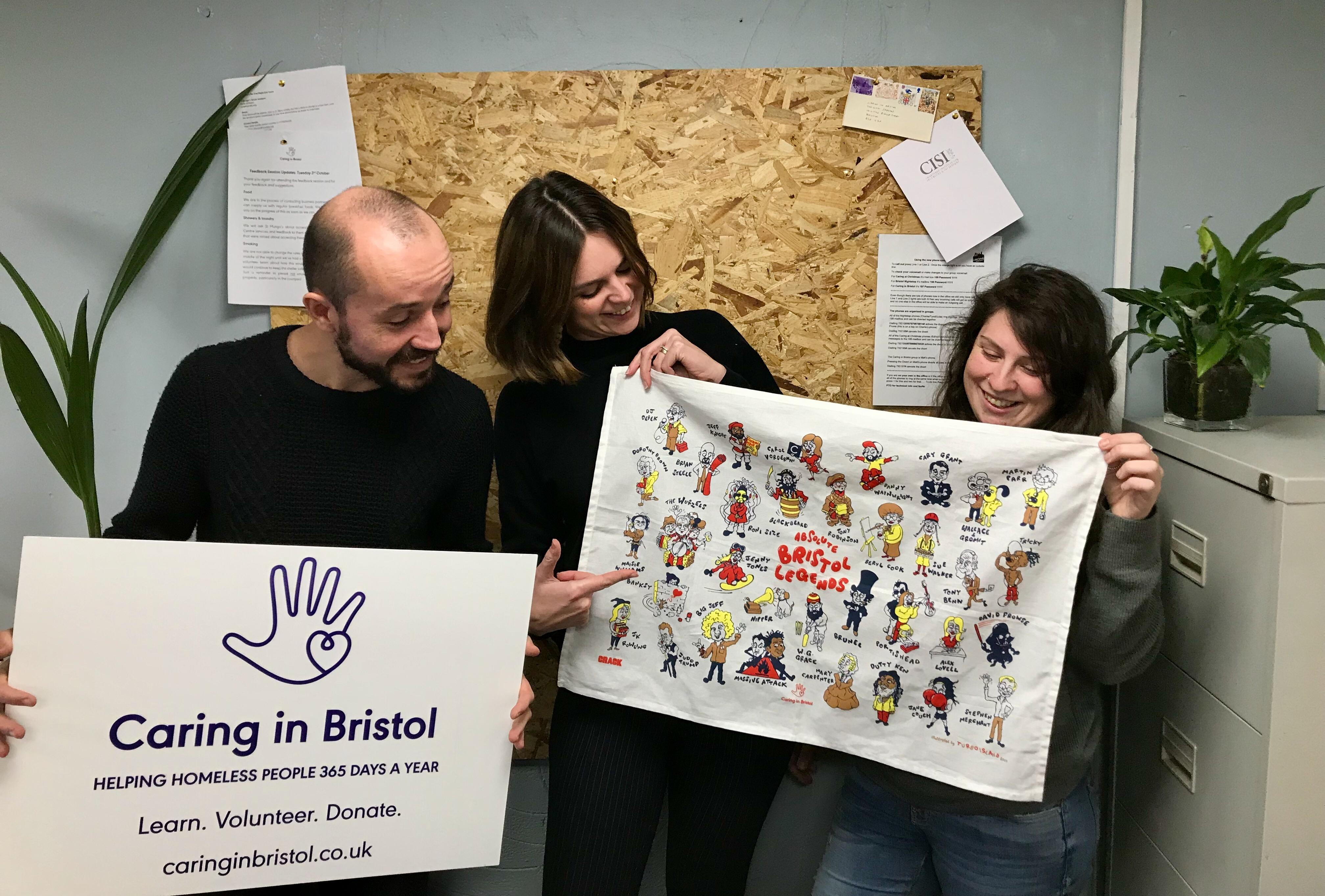 Sales of the tea towel will support Caring in Bristol, who work hard to support homeless and vulnerable people all year round. Their aim is to work towards a society where everyone feels welcome in their community, and has a home to go to. Through a series of projects run by dedicated volunteers, the charity provide temporary accommodation for those forced to sleep rough, particularly young people who may be experiencing issues at home.