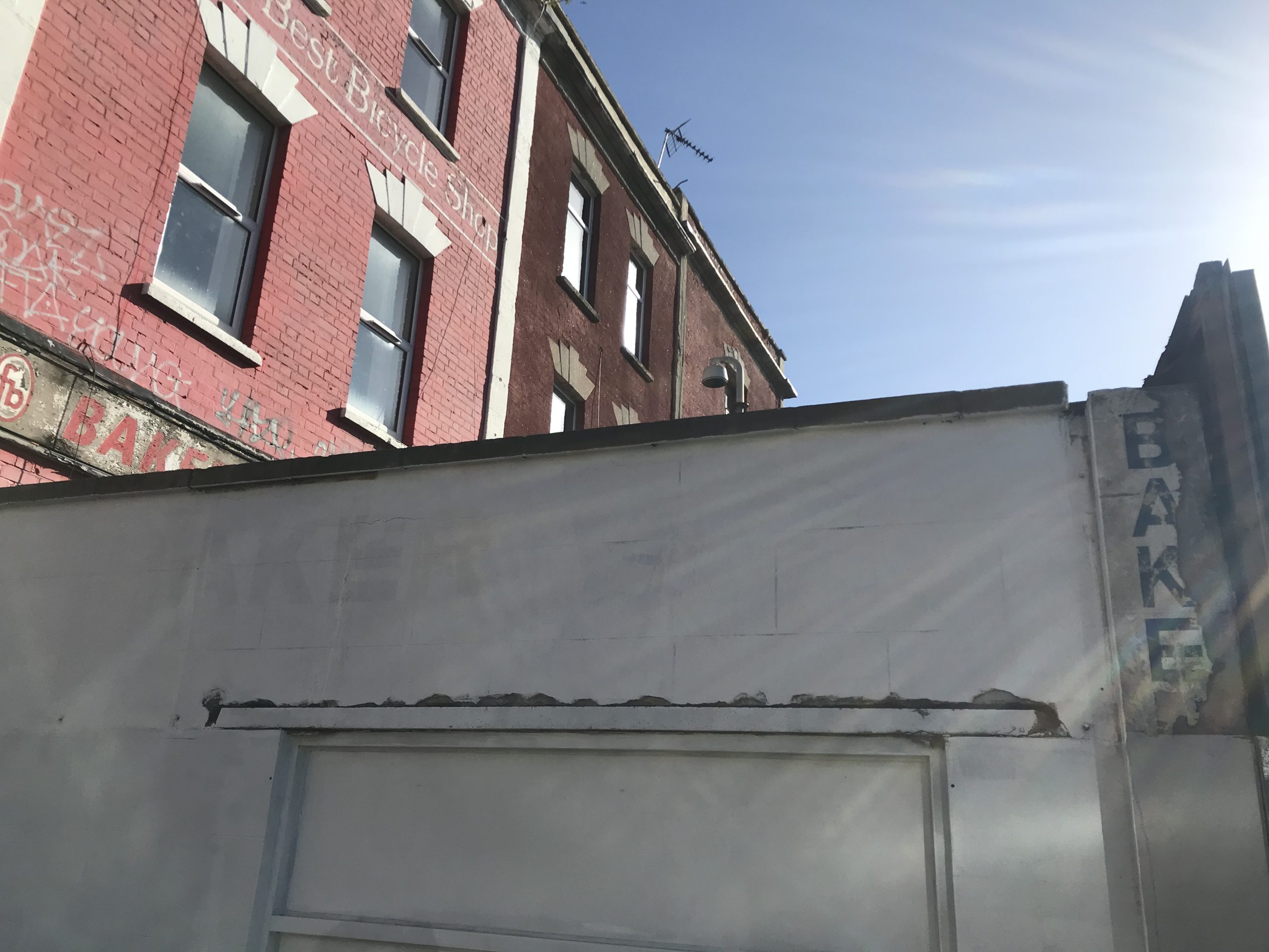 The advert for Fred Baker has now been painted over – photo: Martin Booth