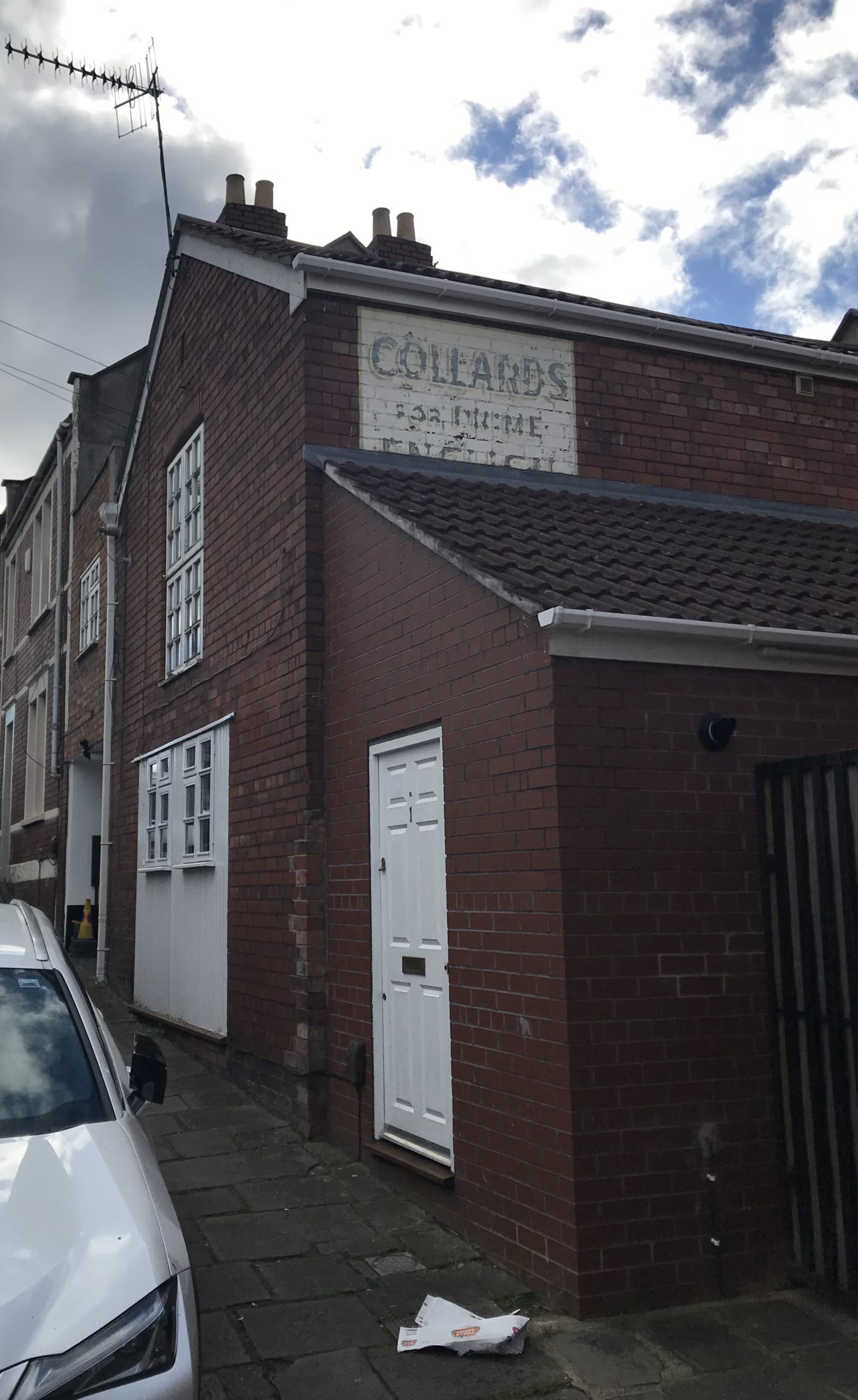The handpainted sign for Fred Baker, on the side of its former shop on Cheltenham Road, included a bicycle which can still just be seen underneath its fresh coat of white paint.