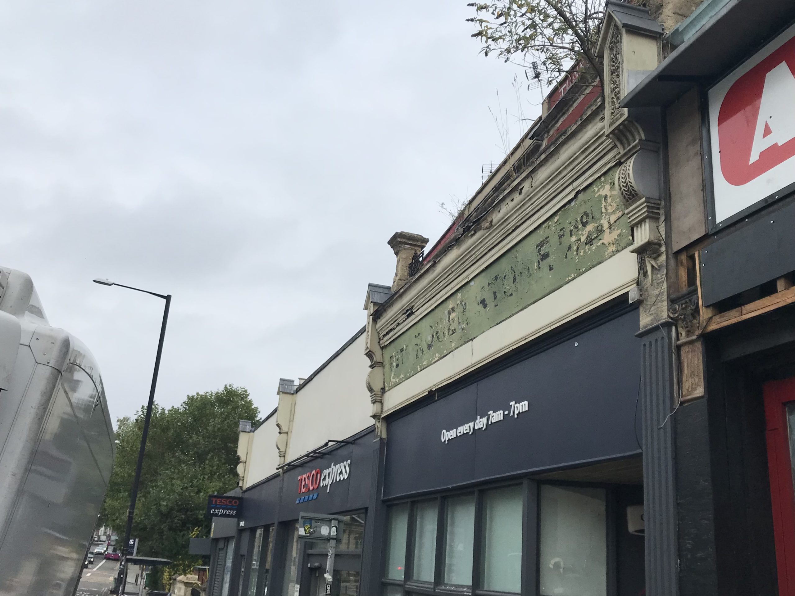 This ghost sign above the Tesco Express on Cheltenham Road was previously hidden behind a sign for the booking office of the former Jester comedy club