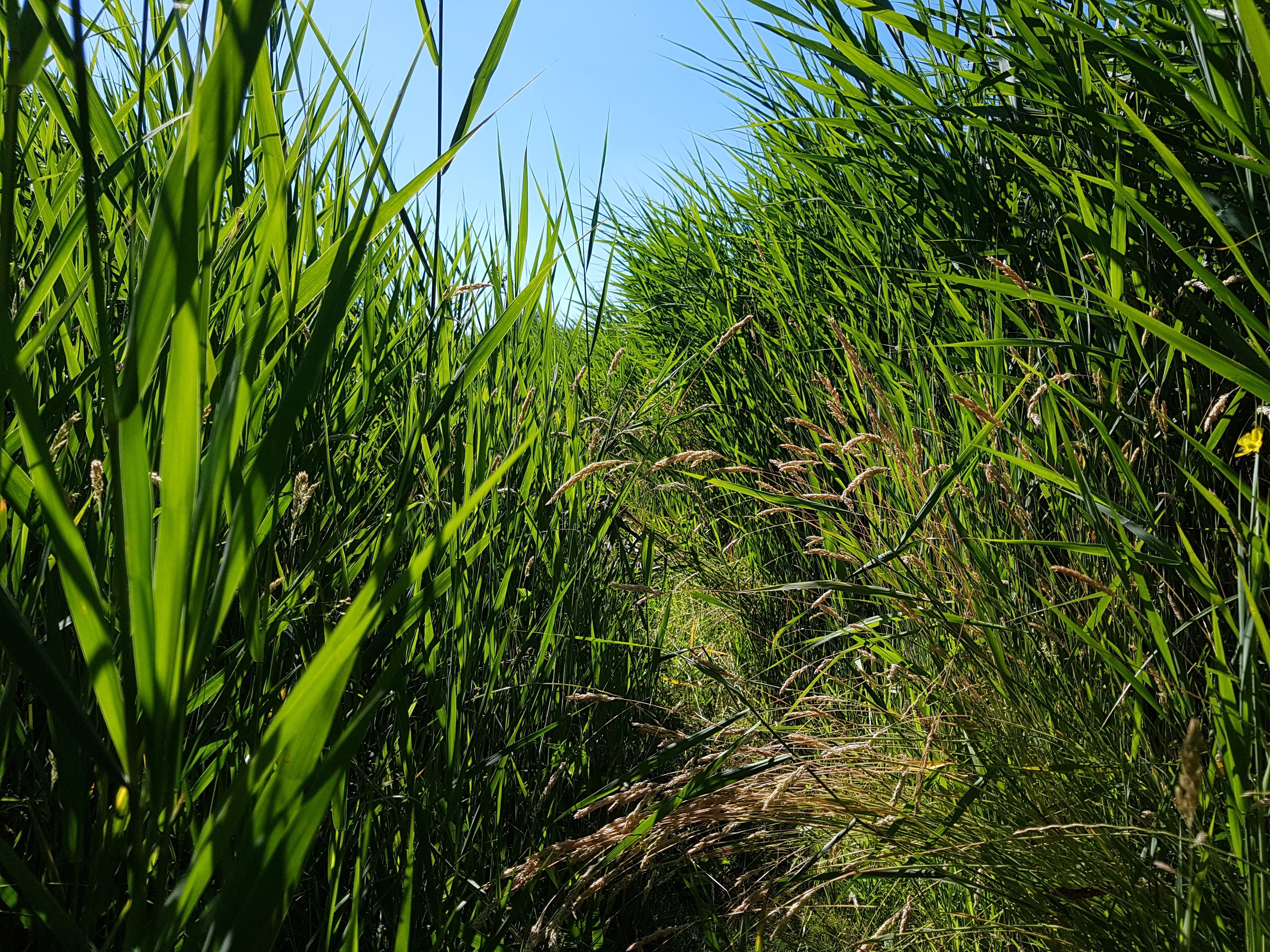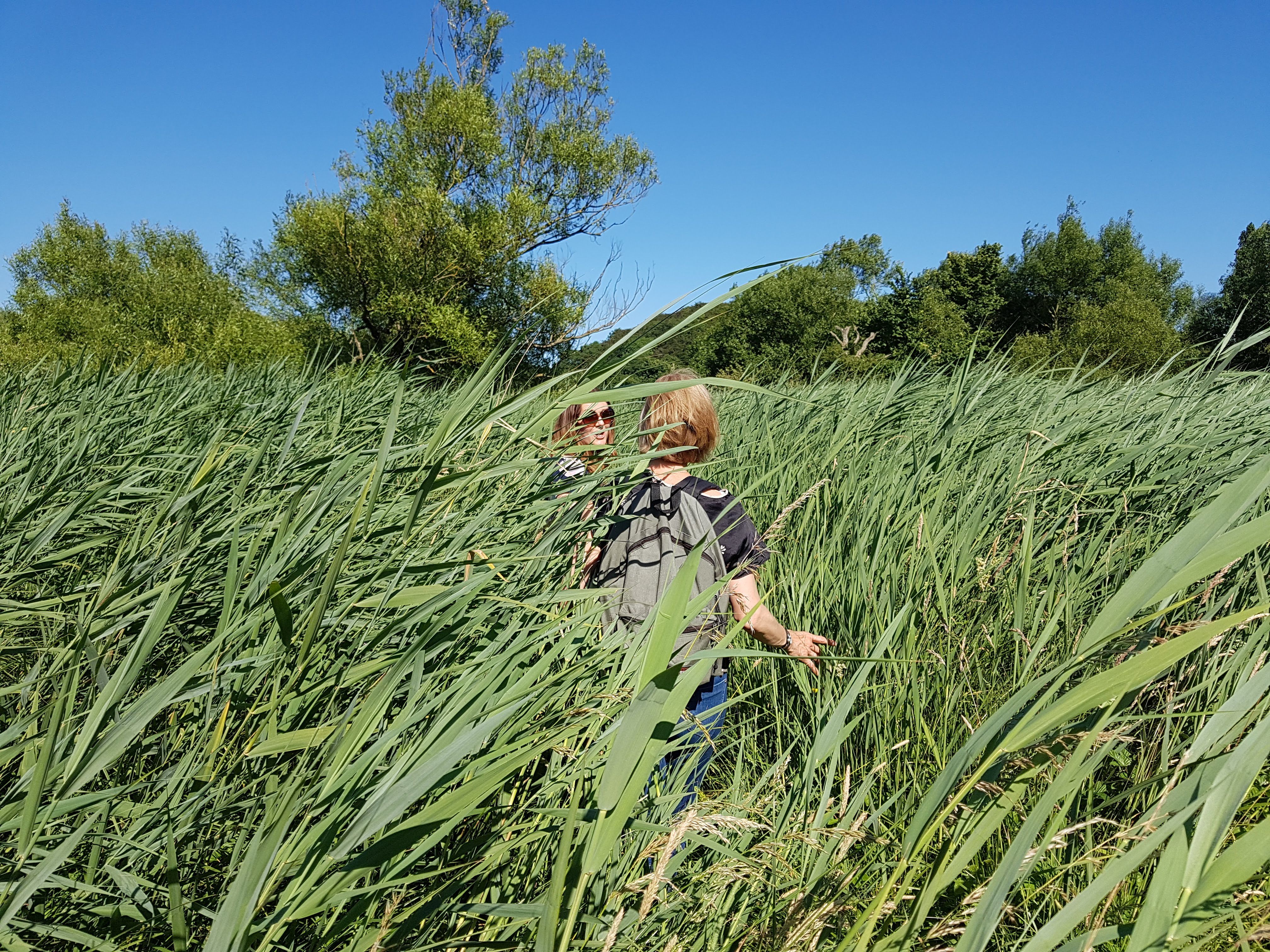 Brambles and grassland have taken over once well-trodden pathways and it is a motley crew that sets out to forge a way through the overgrown greenery and almost head-high reeds at Lawrence Weston Moor.