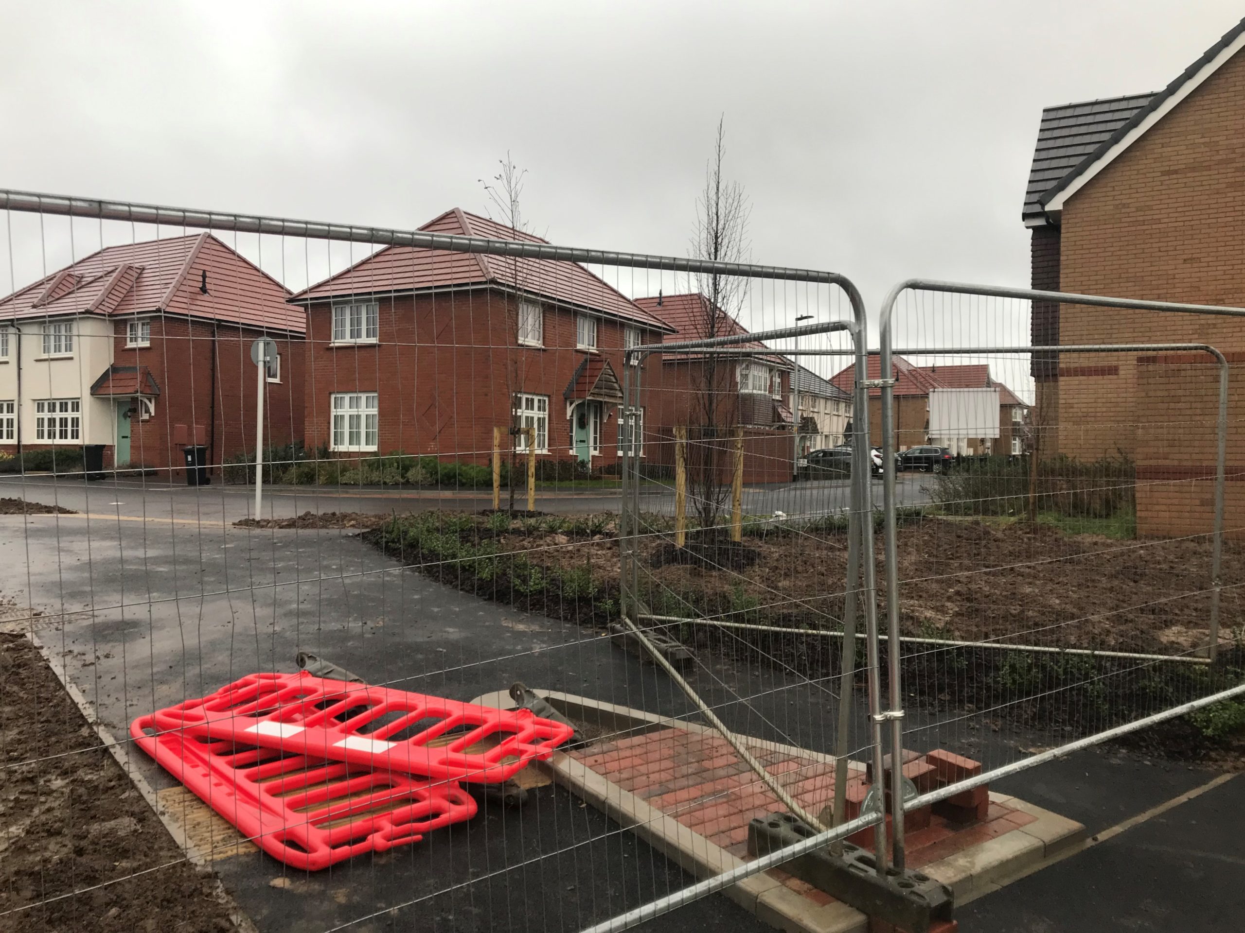 Looking towards Honey Pens Crescent in Cheswick Village from Landseer Avenue in Lockleaze. The fencing has remained in place since building work began on the new development in South Glos – photo: Martin Booth