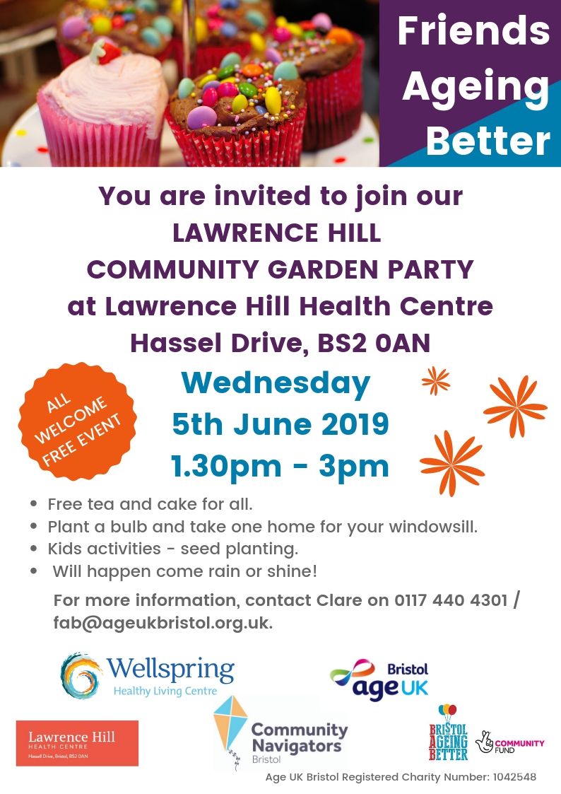 Age UK Bristol is dedicated to older people and tackling loneliness among the elderly. In line with their aims to make Bristol more age-friendly, they are hosting a garden party for all ages in Lawrence Hill.