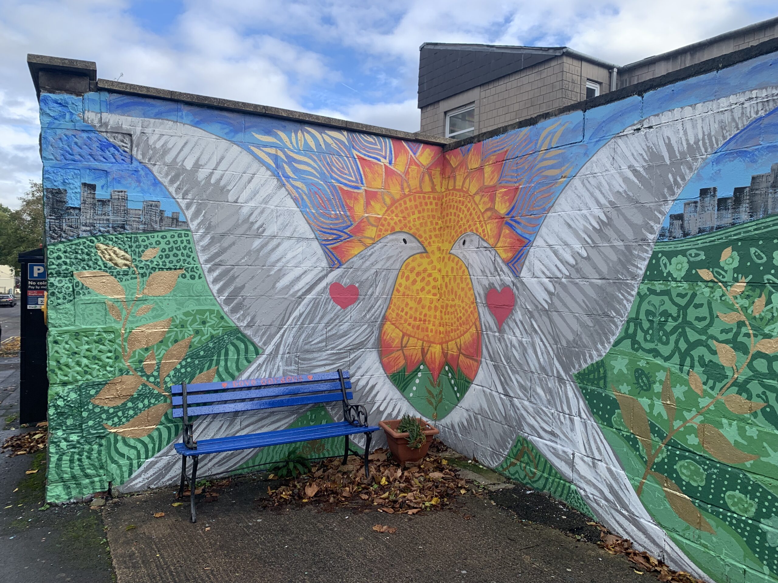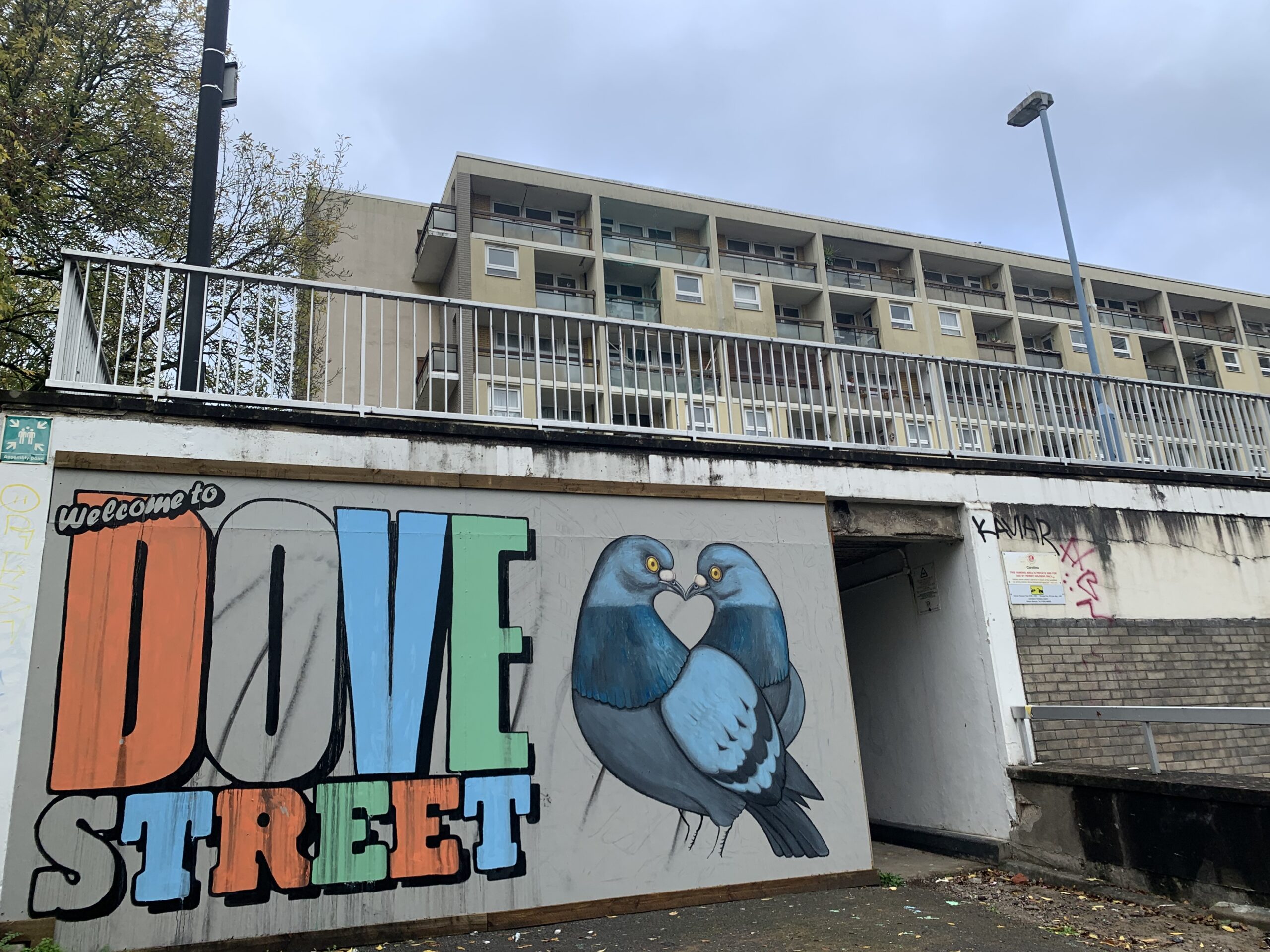 A “Welcome to Dove Street” mural