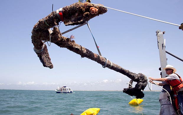 The anchor from the Queen Anne’s Revenge has been recovered from the wreck