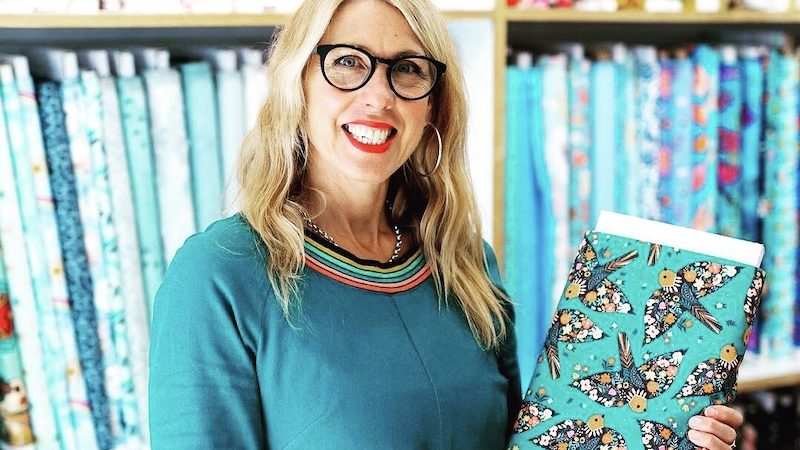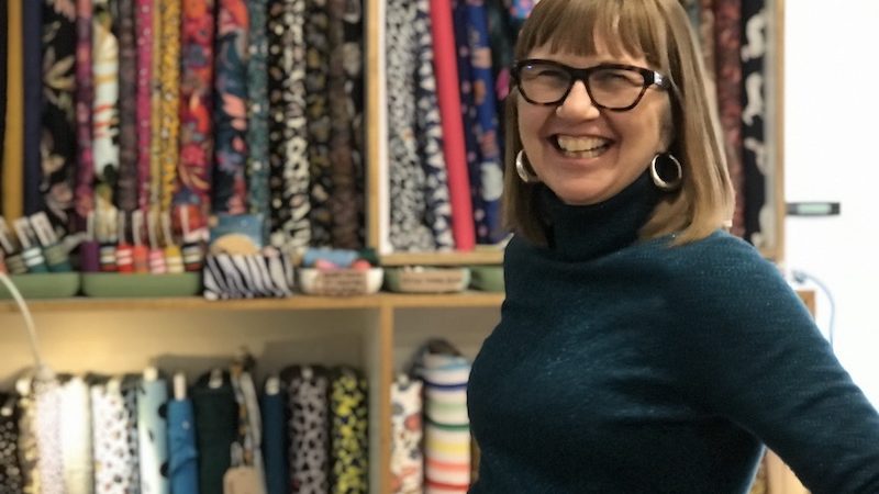 Delia Adey with some of Flo-Jo’s colourful fabrics