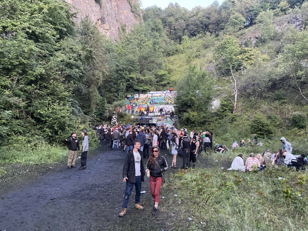 And so it was that the Pill path was the first stretch of my journey, with my new friend Nick, a software engineer and DJ, giving me tips as we walked underneath the Clifton Suspension Bridge, passed a collection of Mr Bumps by Bumpsy and came to the party in what used to be a police shooting range.