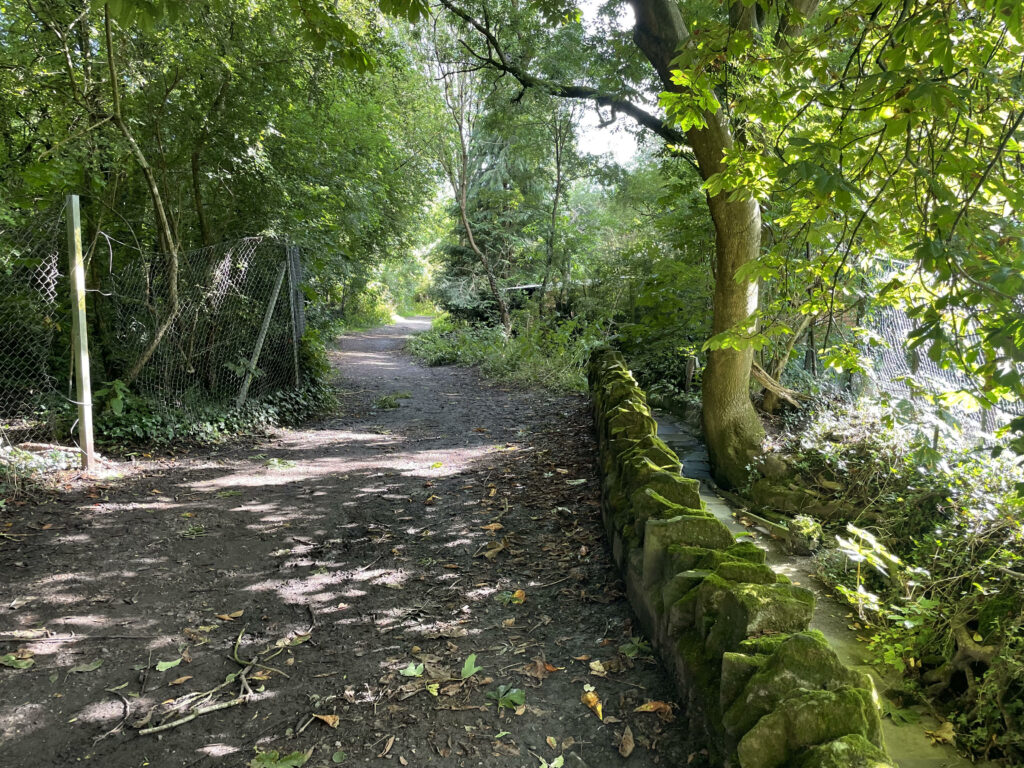 So it was back on a Voi the following morning to pick up where I had left off. Stockwood Road becomes Scotland Lane and a small stone bridge over a stream is another clue to the exact location of the boundary here, with some fly tipping sadly on one side of the lane.